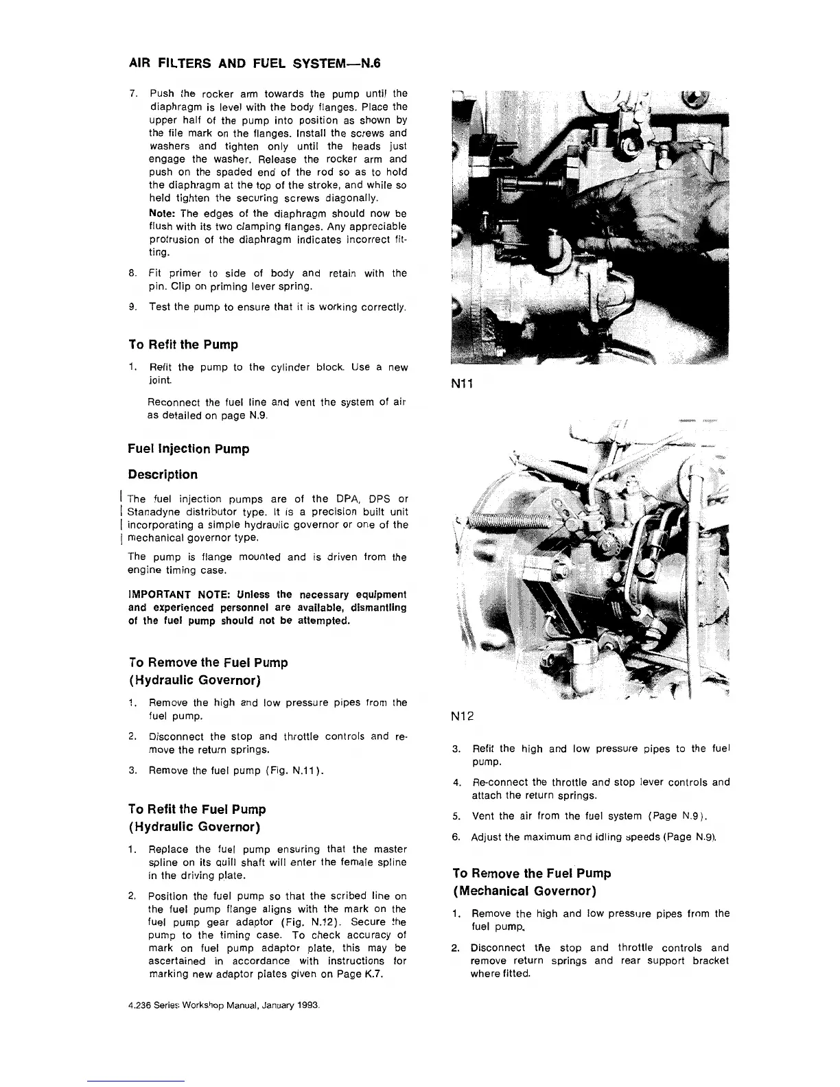 Perkins 4.248 - Fuel Injection Pump; To Refit the Pump; To Remove the Fuel Pump; To Refit the Fuel Pump