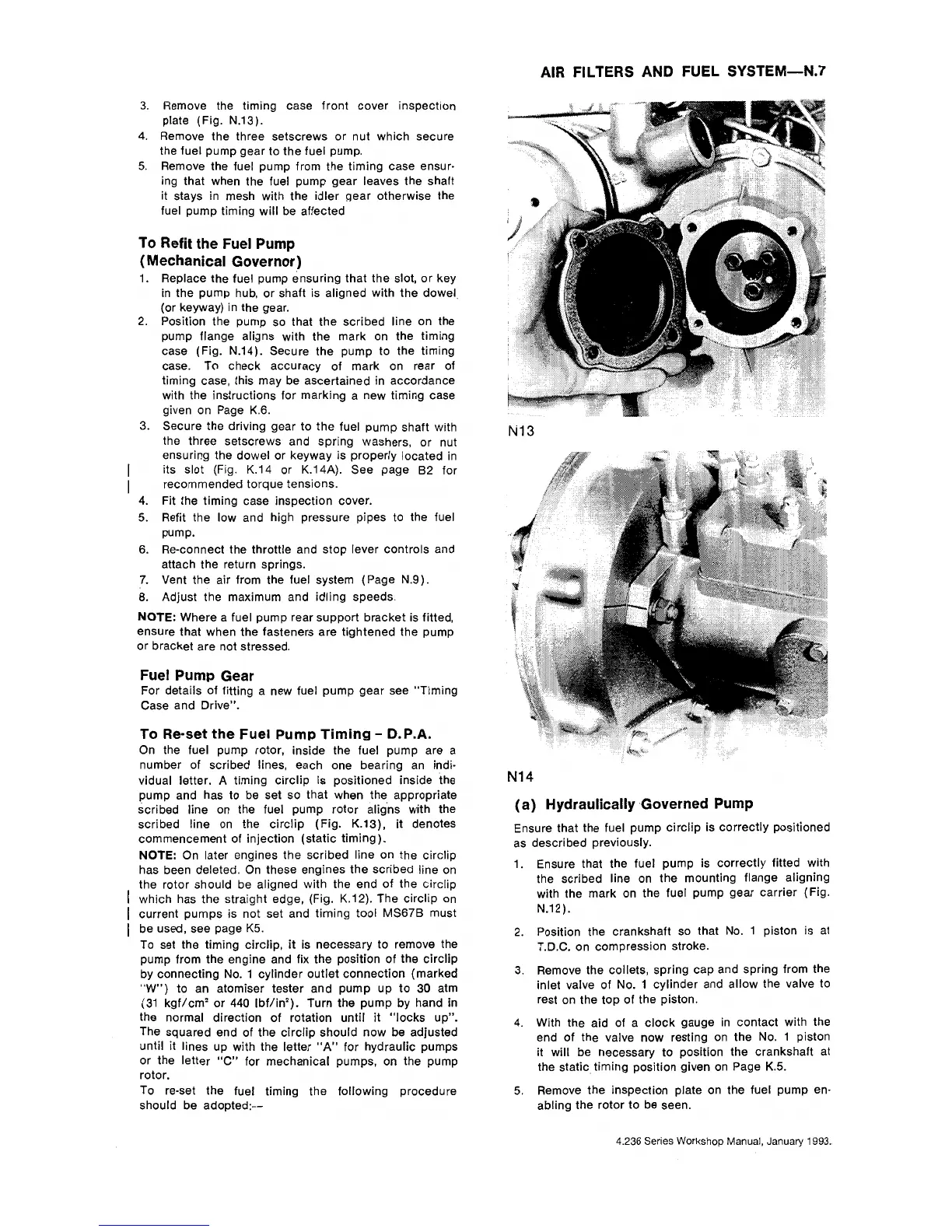 Perkins 4.248 - To Re-Set the Fuel Pump Timing - D.P.A.; Hydraulically Governed Pump