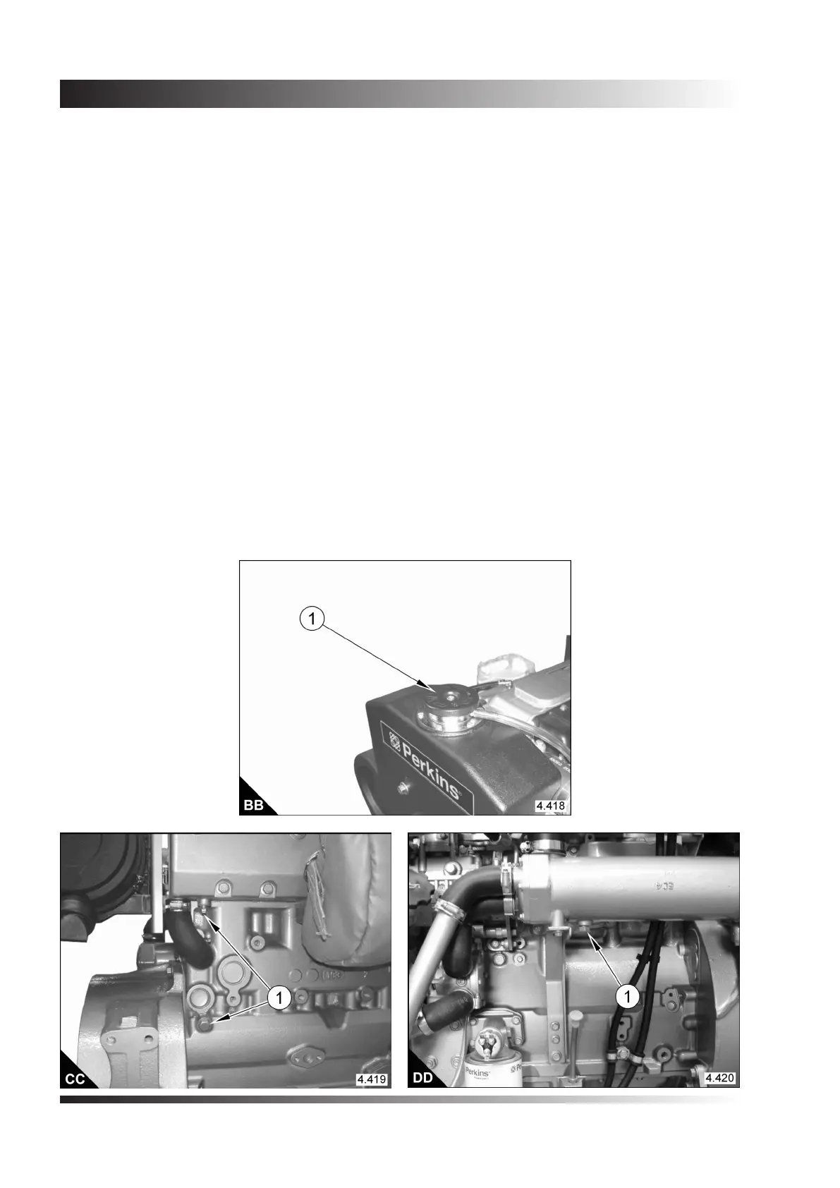 2. Remove the drain plugs (CC1) from the side of the cylinder block and the heat exchanger (DD1). Ensure