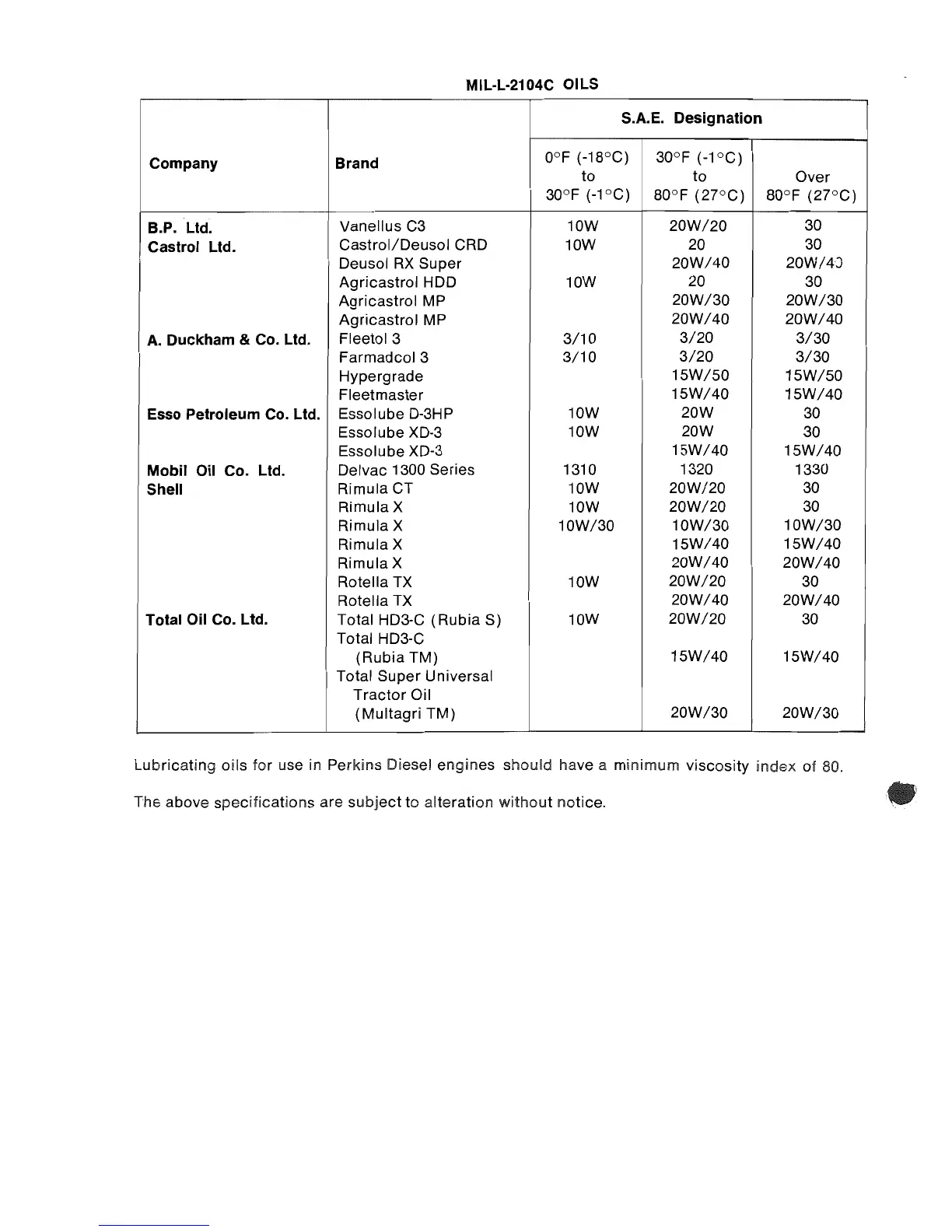 Perkins 4.99 - Lubricating Oils Specifications