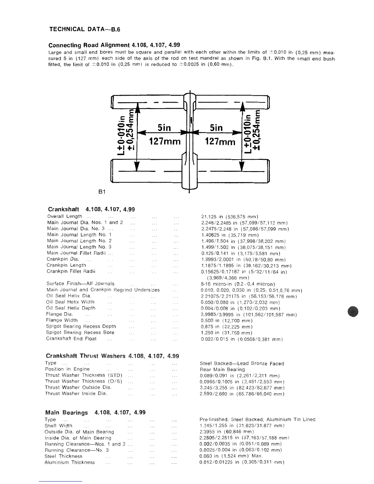 Perkins 4.99 - Crankshaft and Bearing Specifications; Connecting Rod Alignment and Crankshaft Dimensions; Main Bearings and Thrust Washers