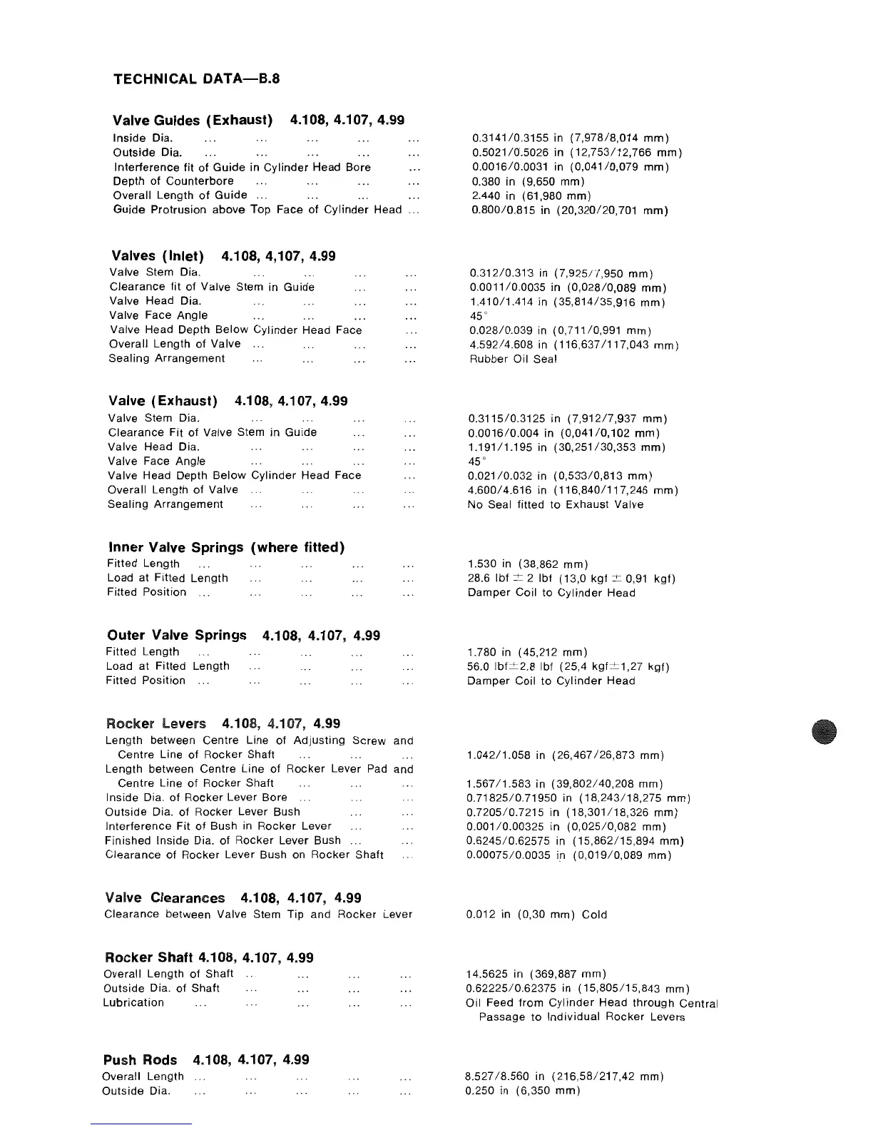 Valve Clearances 4.108, 4.107, 4.99
