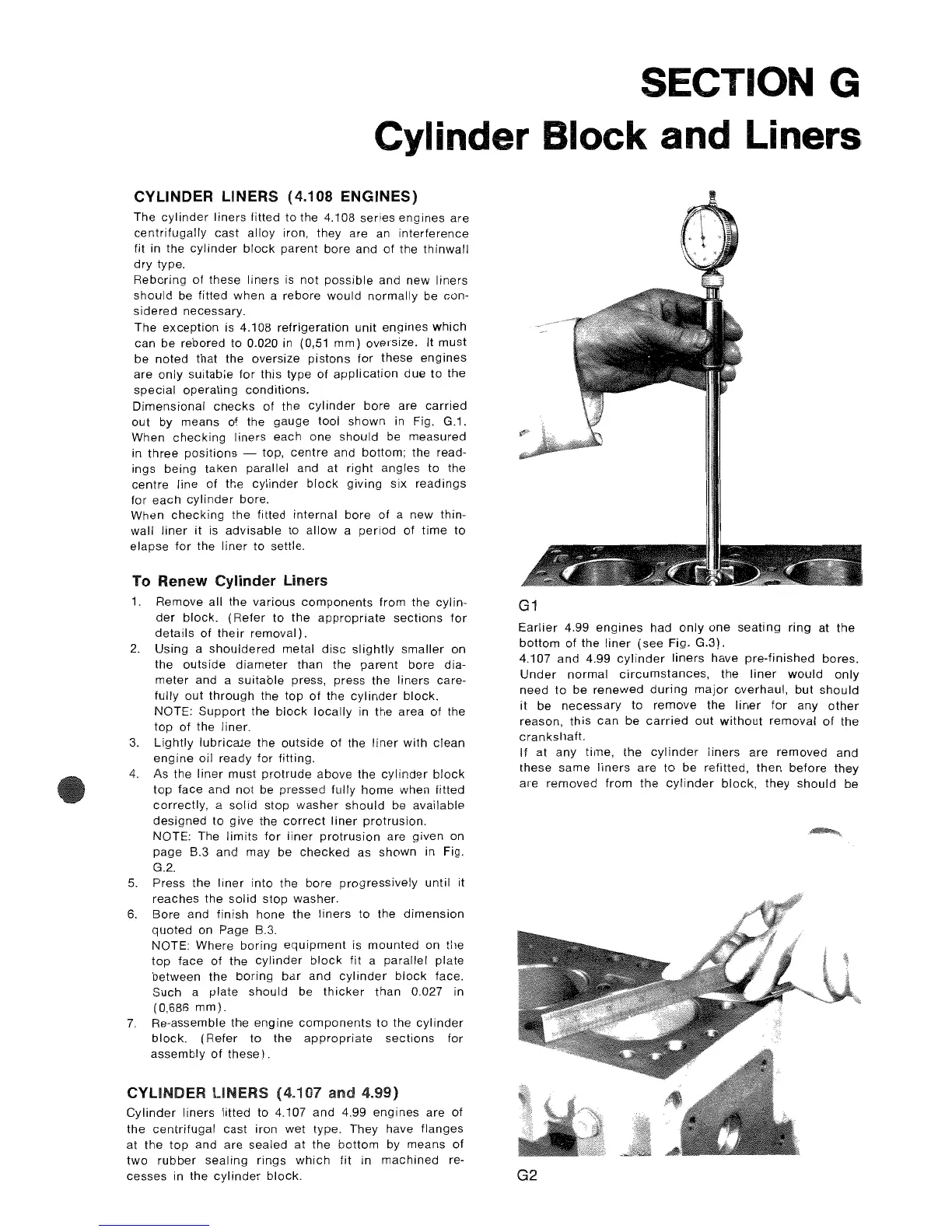 Perkins 4.99 - SECTION G Cylinder Block and Liners; Cylinder Liner Specifications and Renewal
