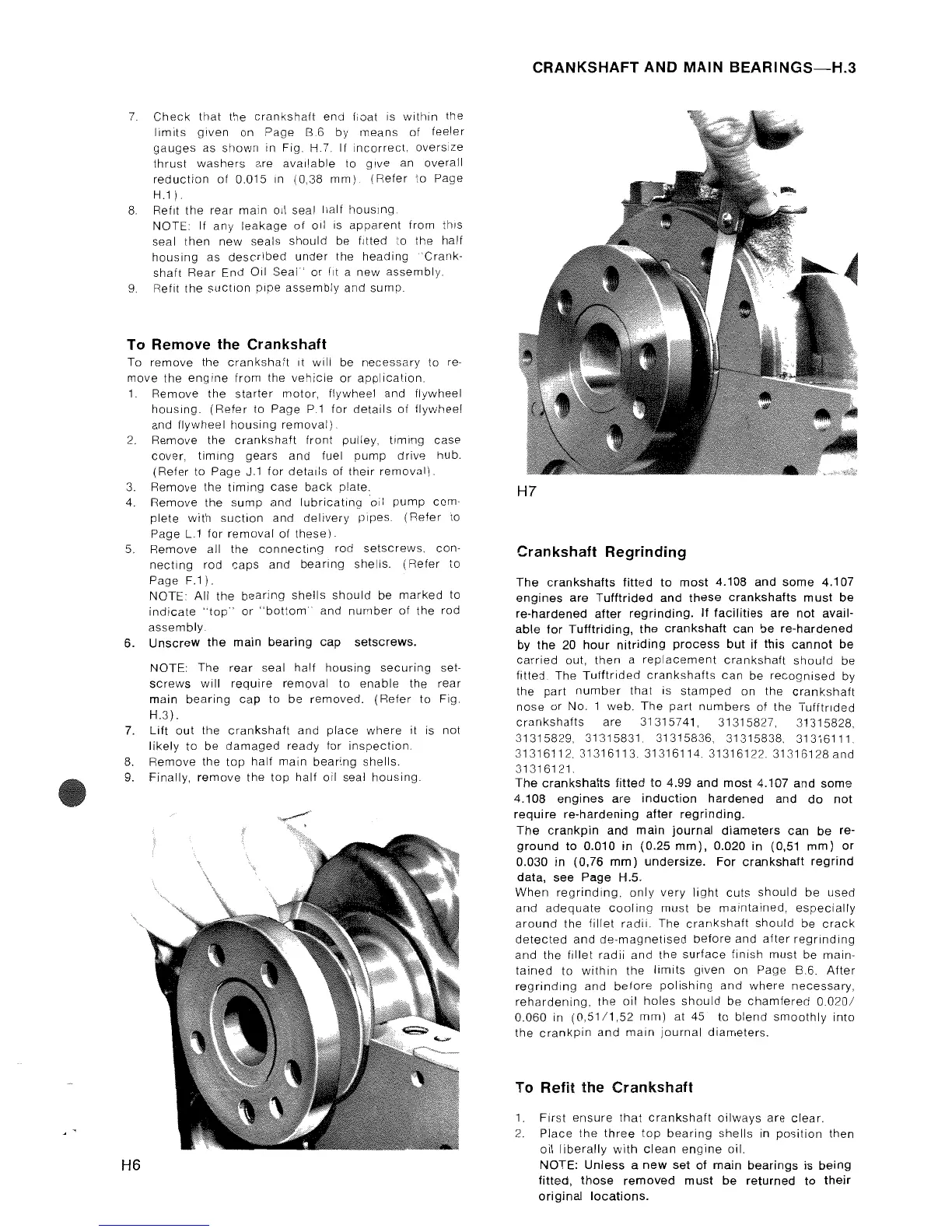 Perkins 4.99 - Crankshaft Refitting and Regrinding; Refitting the Crankshaft; Crankshaft Regrinding Guidelines