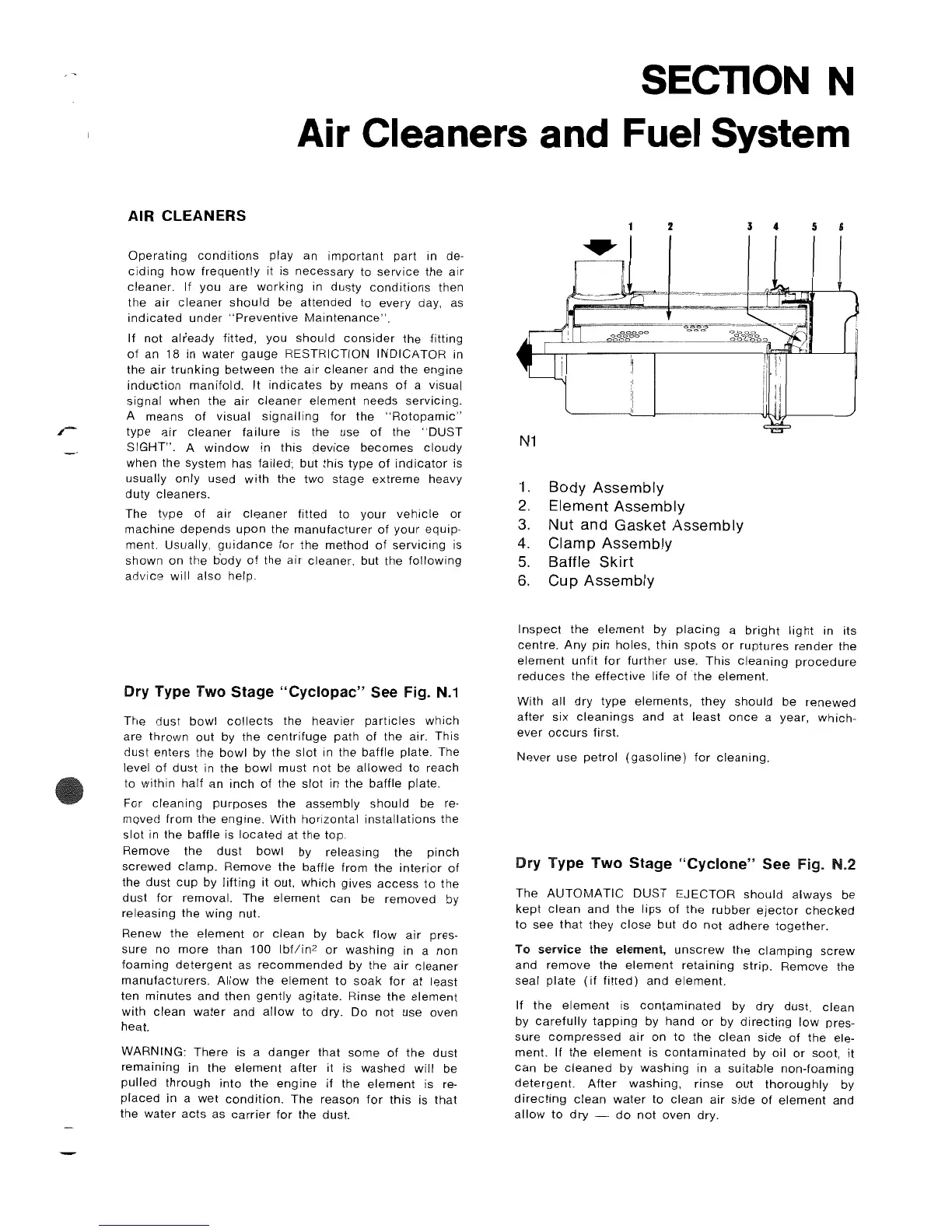 Perkins 4.99 - SECTION N Air Cleaners and Fuel System; Air Cleaner Servicing Overview; Dry Type Air Cleaner Procedures