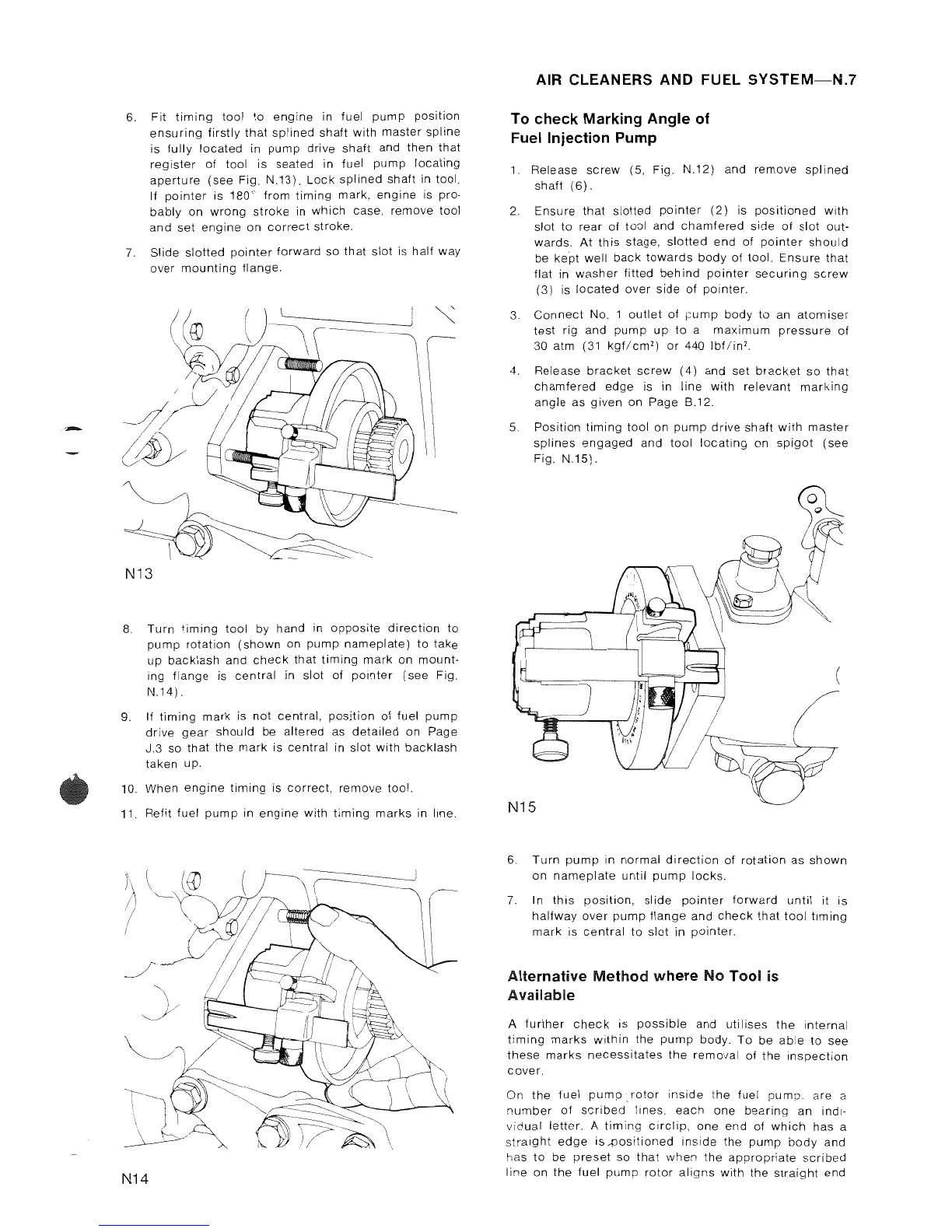Perkins 4.99 - Fuel Pump Timing Checks; Fuel Pump Timing Angle Check; Alternative Timing Check Method