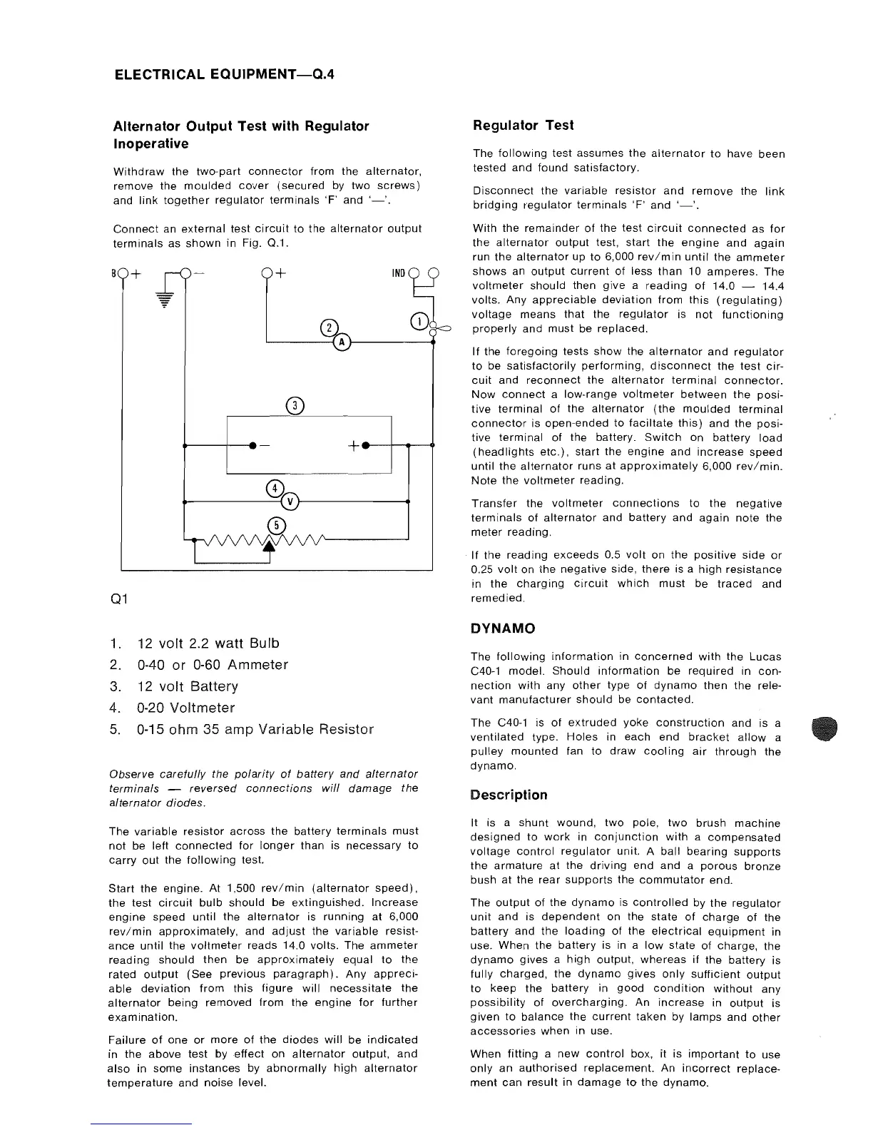 Perkins 4.99 - Electrical System Testing; Alternator Output Test and Regulator Test; Dynamo Description and Operation