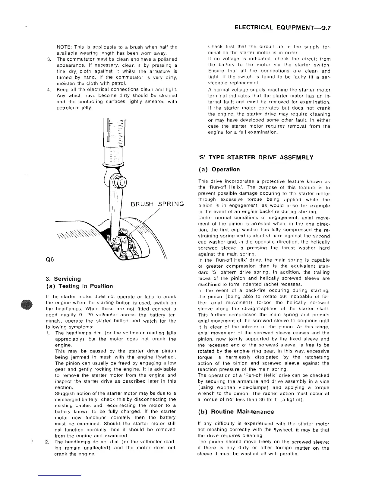 Perkins 4.99 - Starter Motor Servicing and Operation; Starter Motor Testing and S Type Drive Operation; S Type Starter Drive Maintenance