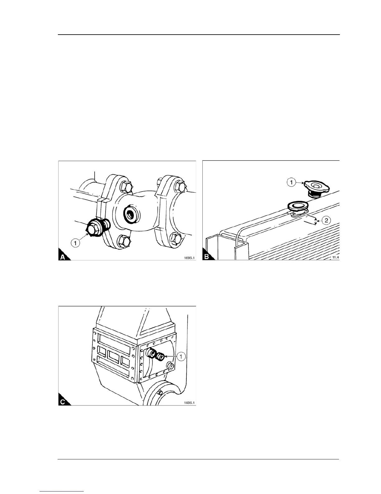 3 Refit the vent plugs and continue filling until the coolant is 25 mm (1”) below the filler neck (B2).