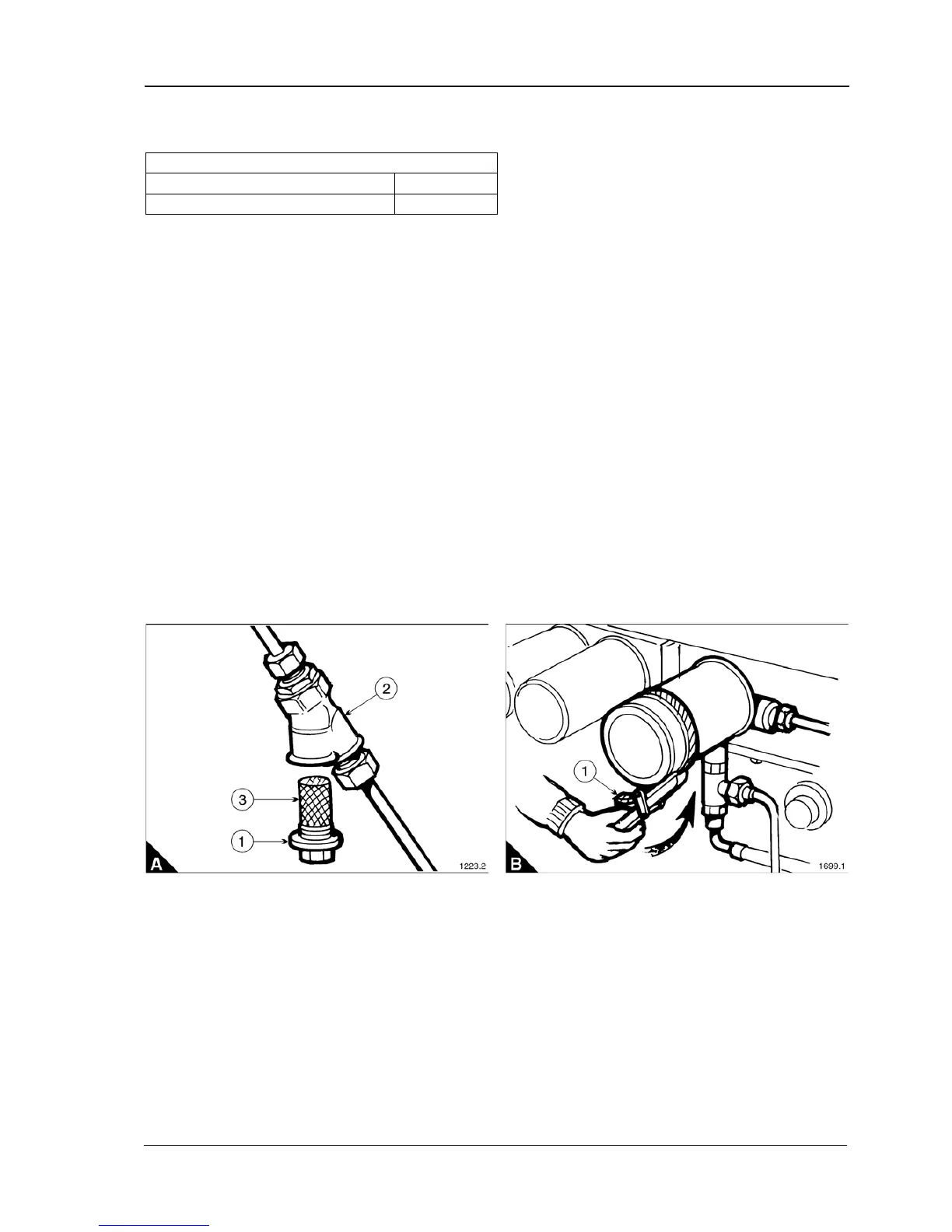 1 Remove a fuel filter by turning it anti-clockwise using a strap wrench (B1).