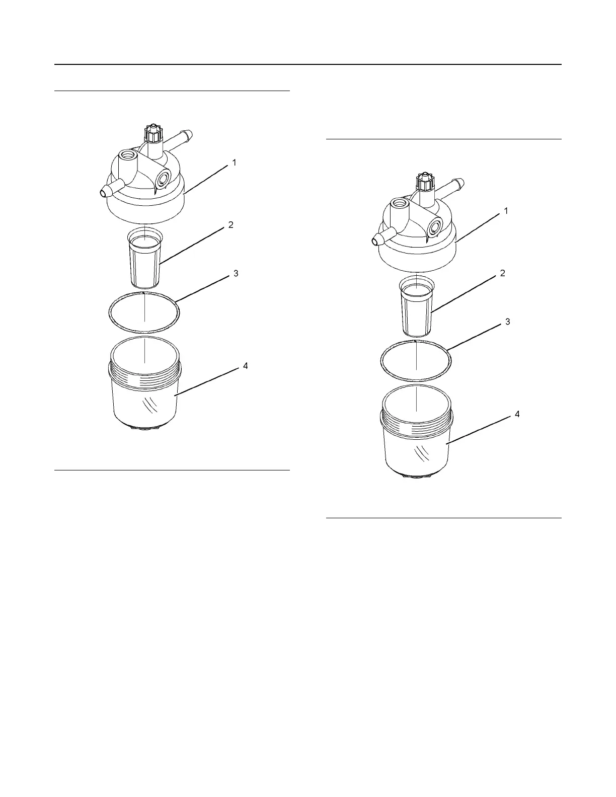 3. Install the filter bowl (4) to the fuel filter base (1).