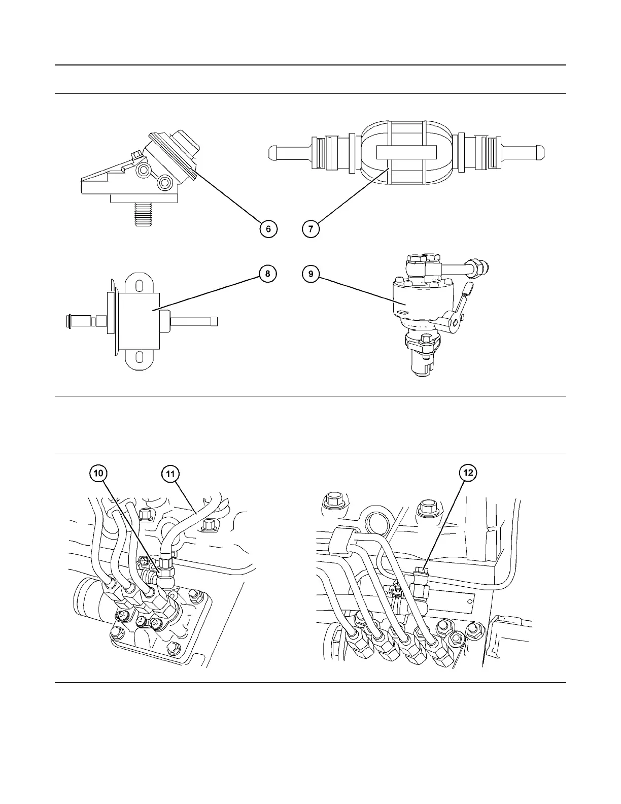 (10) Connector bolt (11) Fuel return line (12) Connector bolt