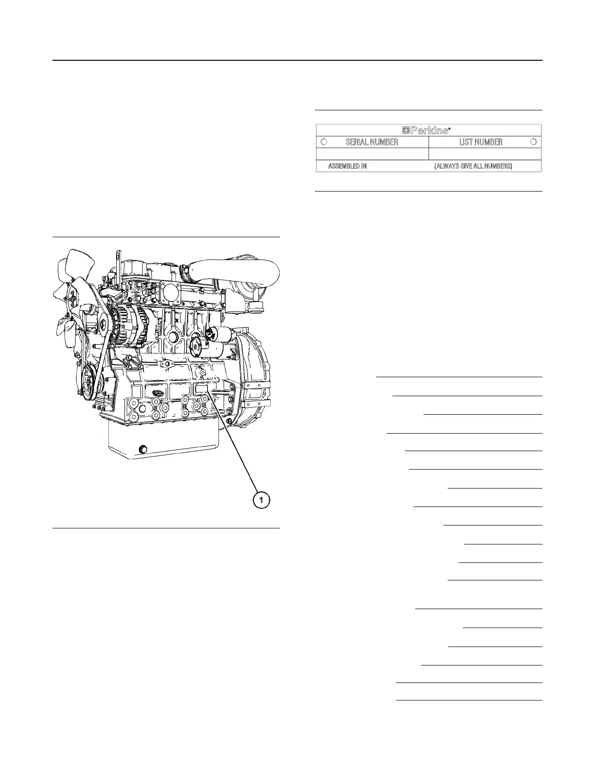 The engine serial plate (1) is on the left side of the
