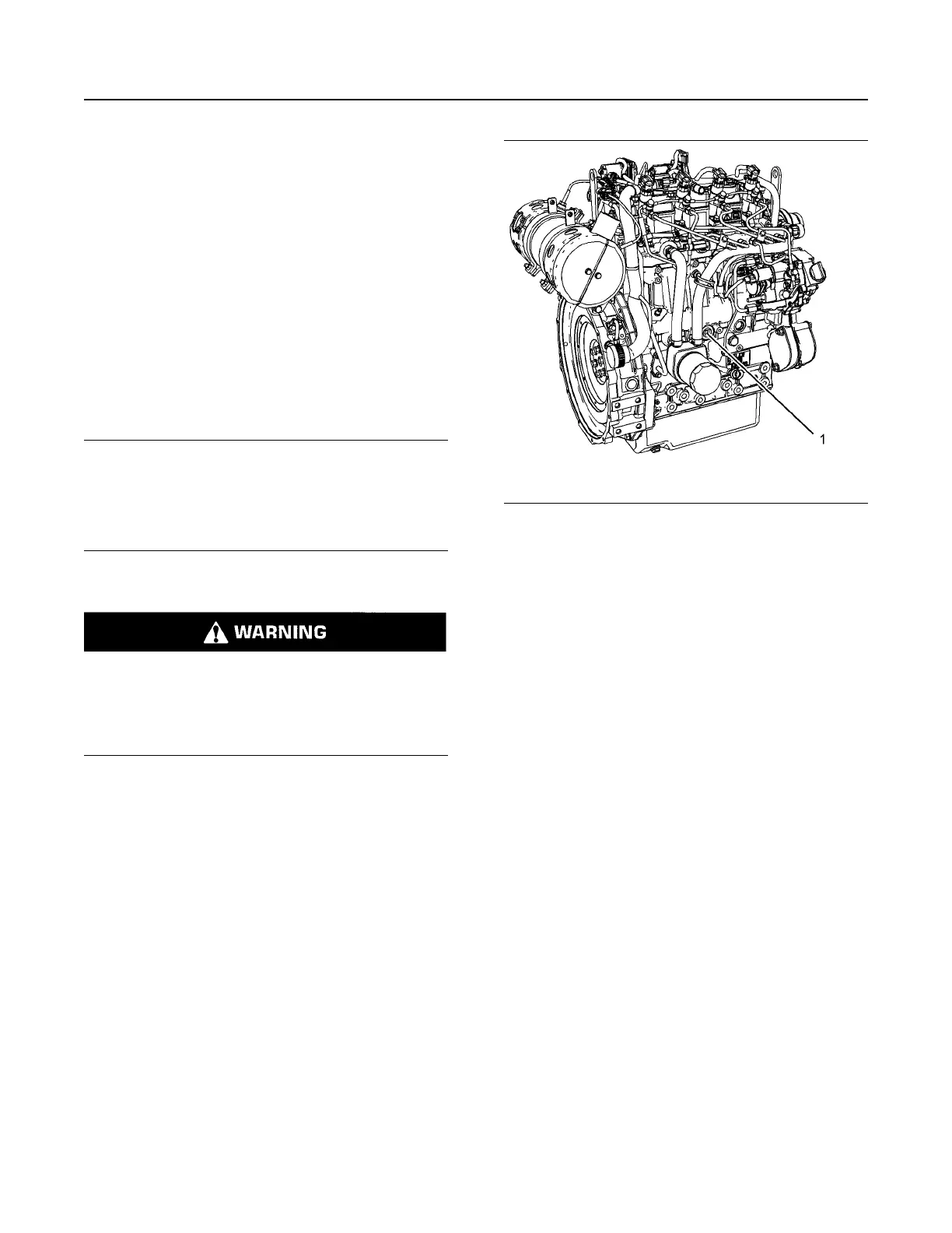 2. Remove drain plug (1) on the engine. Open the