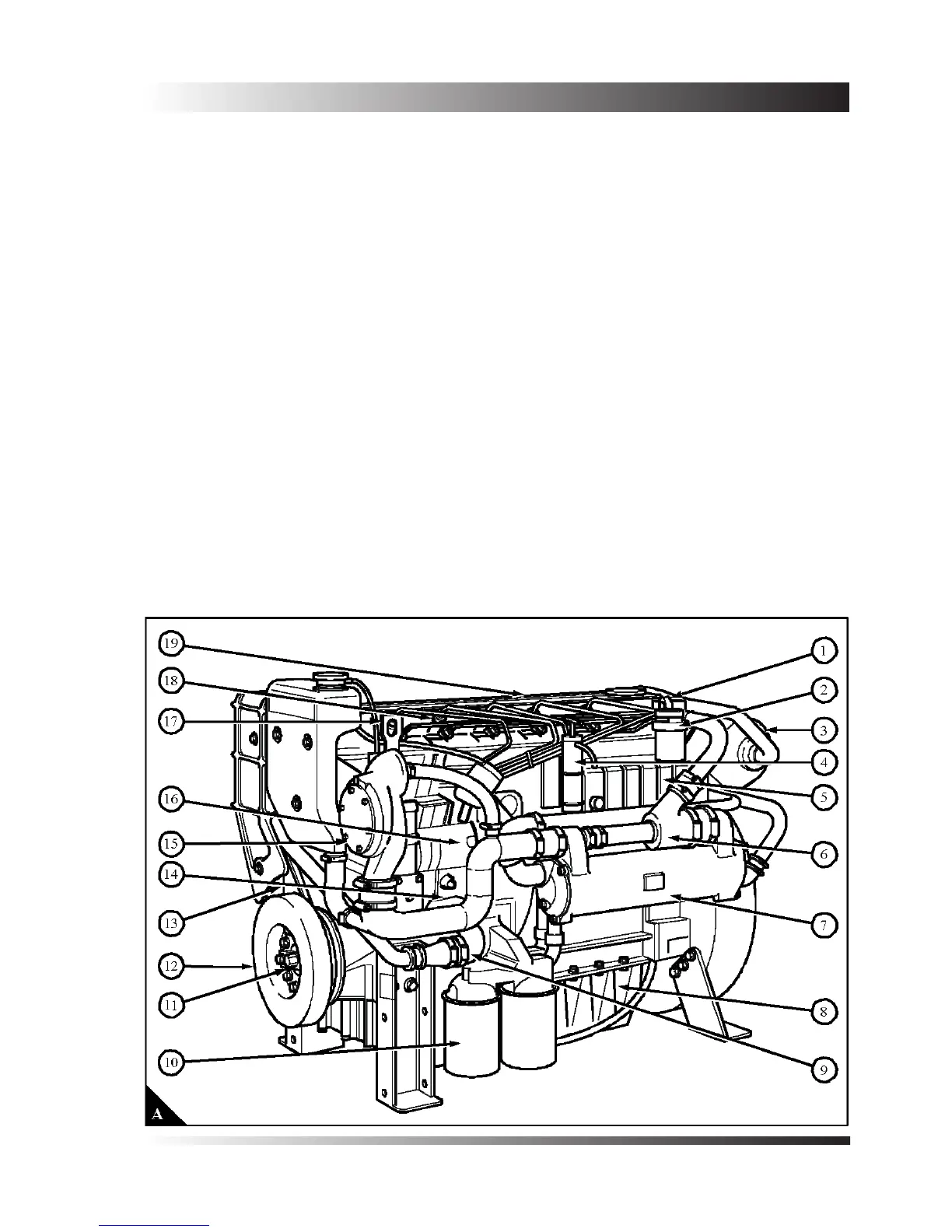 Location of engine parts - 6 cylinder turbocharged, intercooled engines