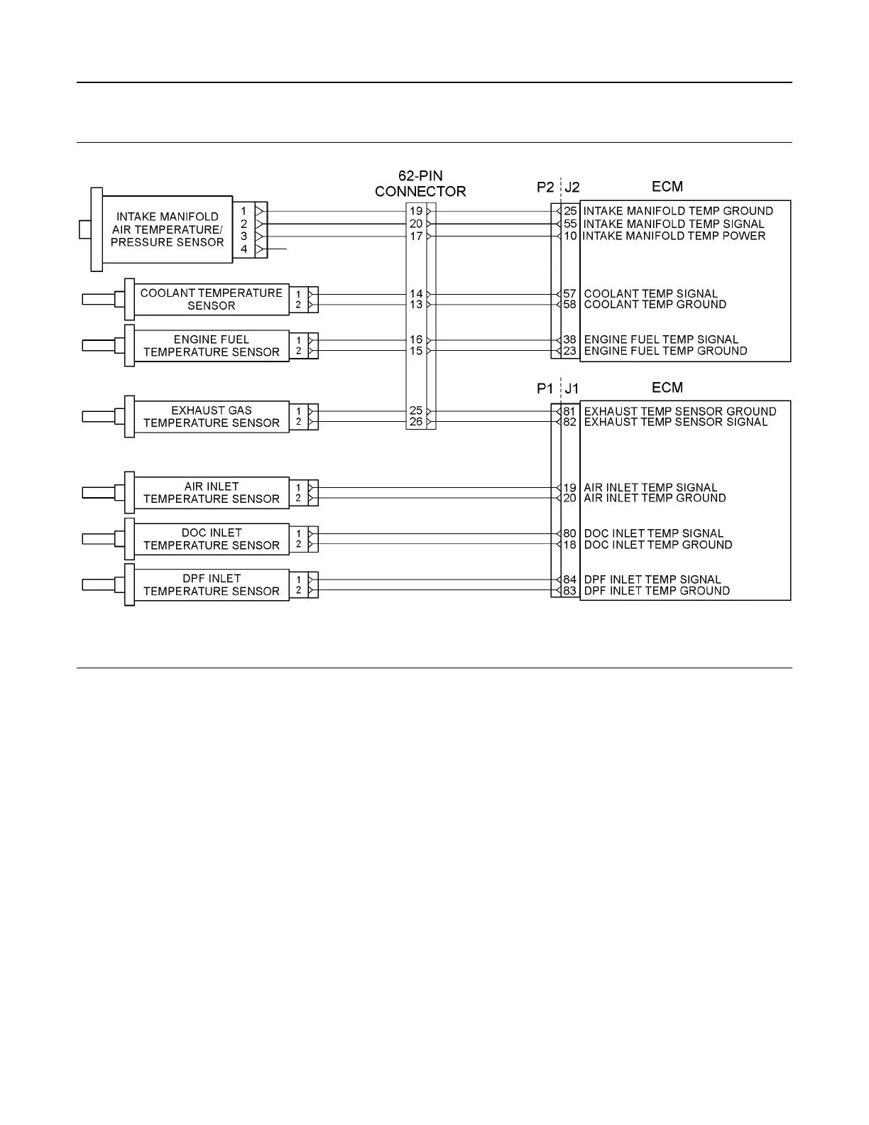 Schematic for the temperature sensors for the 854E-E34TA (model JR) engine