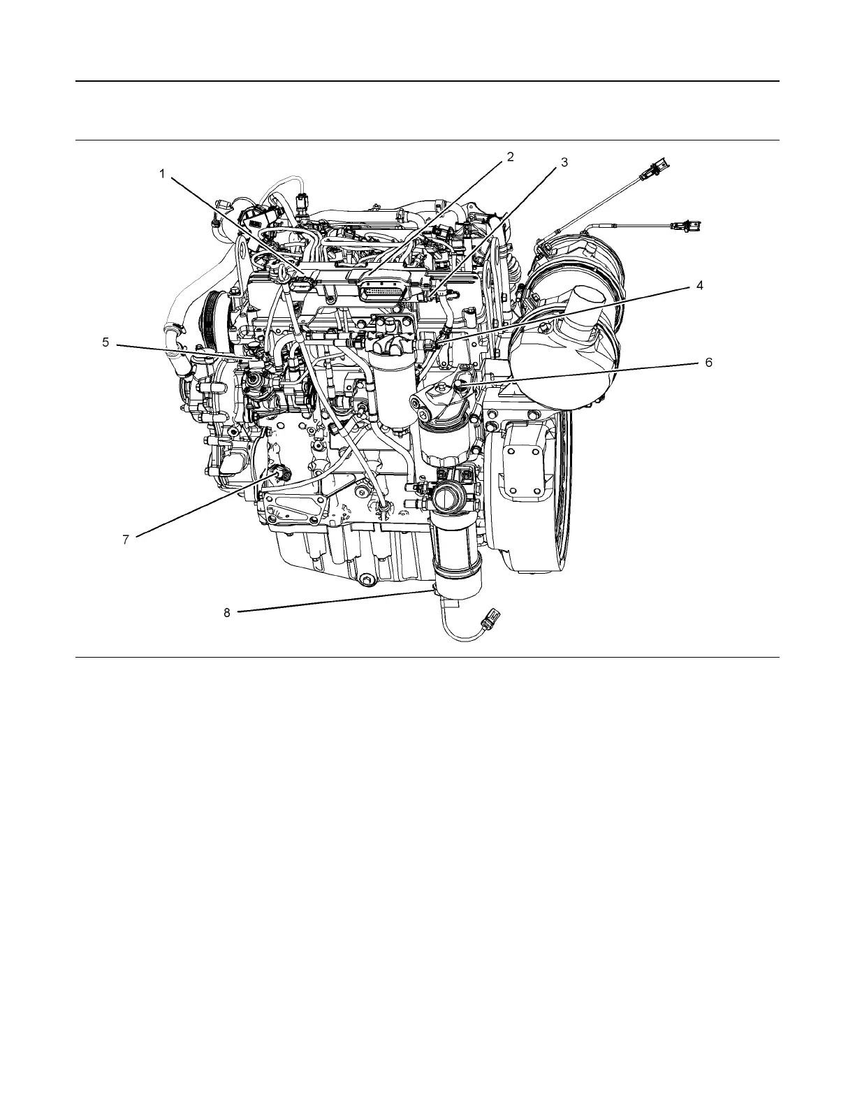 Sensors and electrical connector locations on the left side of the engine (typical example)