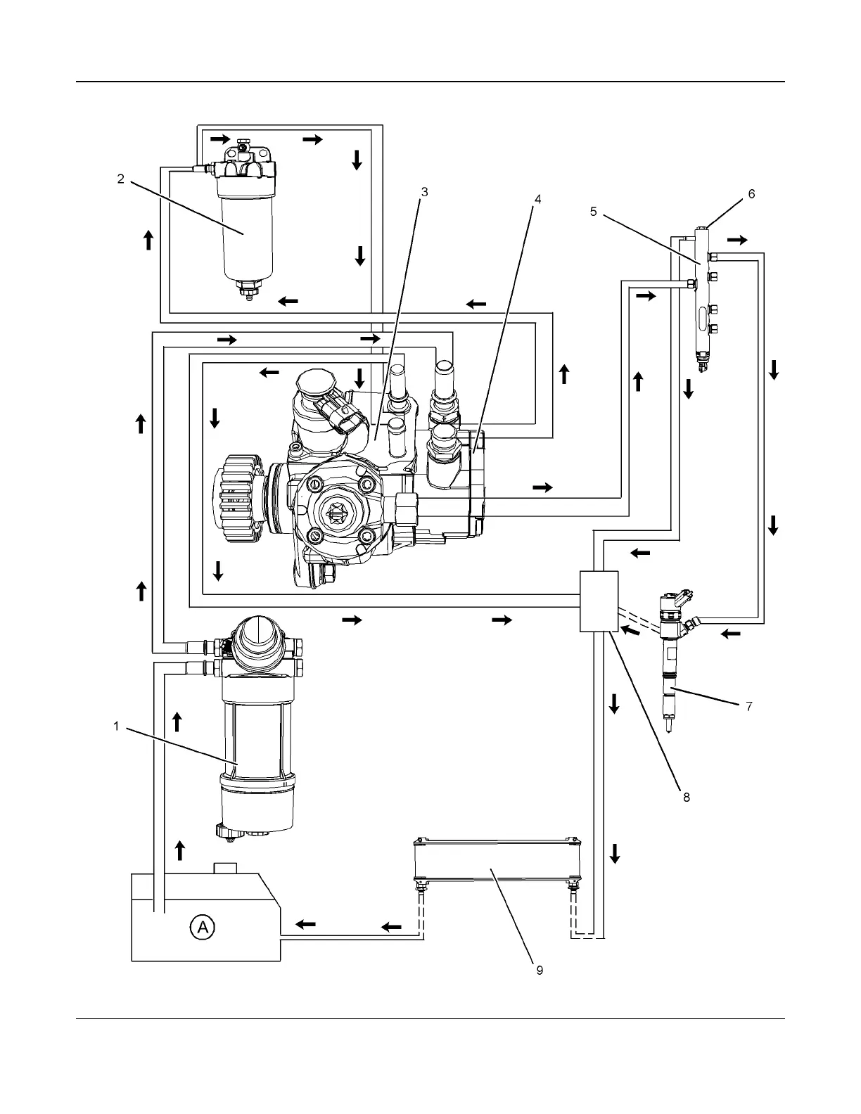 (1) Primary fuel filter (2) Secondary fuel filter