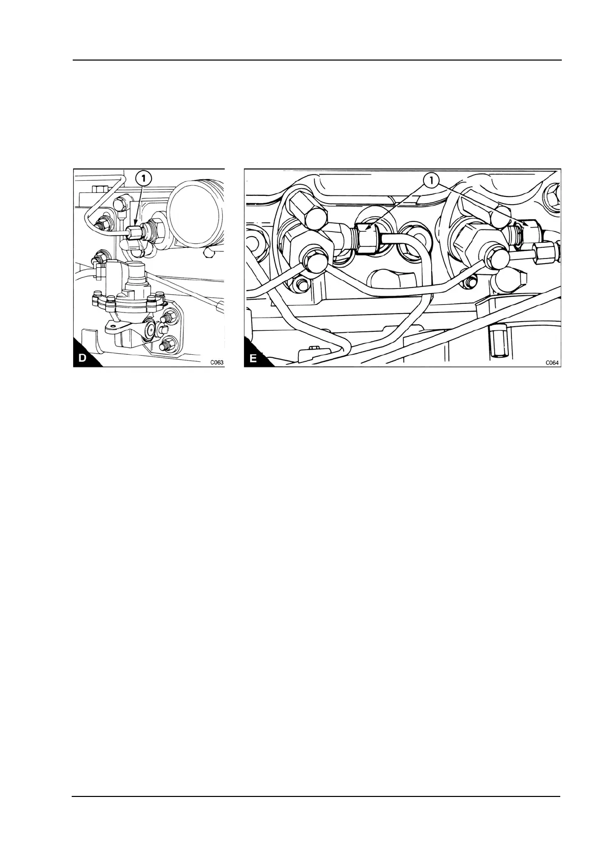 7 Loosen the union nut (D1) at the fuelled starting aid (if one is fitted) and operate the lift pump until fuel, free