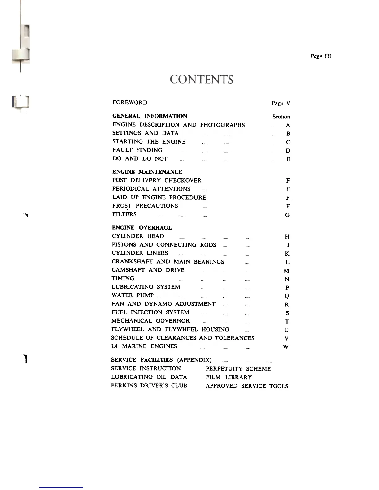 LUBRICATING SYSTEM ... WATER PUMP ... FAN AND DYNAMO ADJUSTMENT ..,.. FUEL INJECTION SYSTEM MECHANICAL GOVERNOR FL YWHEEL AND FL YWHEEL HOUSING SCHEDULE OF CLEARANCES AND TOLERANCES