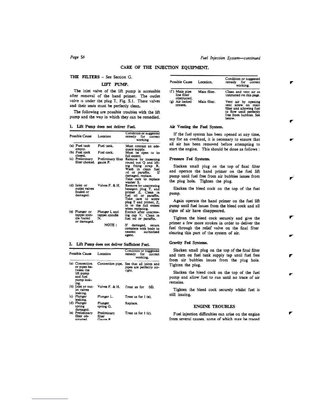 Tbe inlet valve of the lift pump is accessible