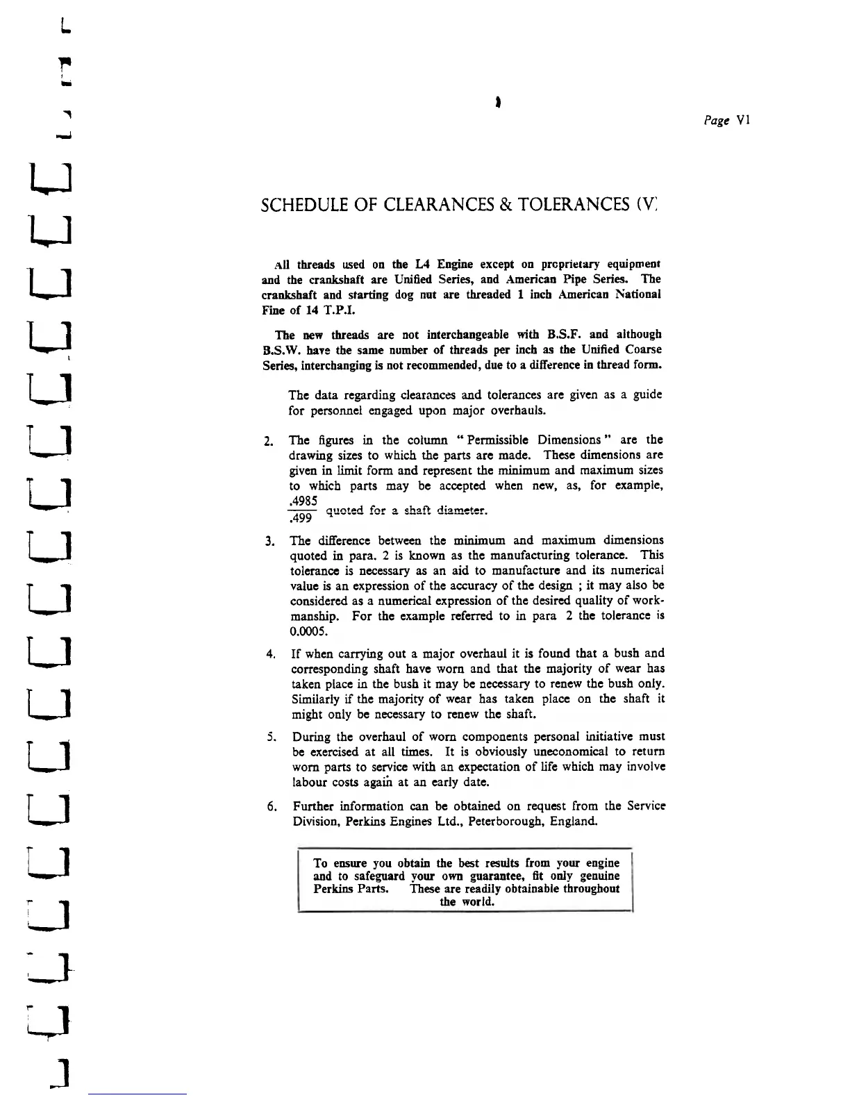 SCHEDULE OF CLEARANCES & TOLERANCES (V: