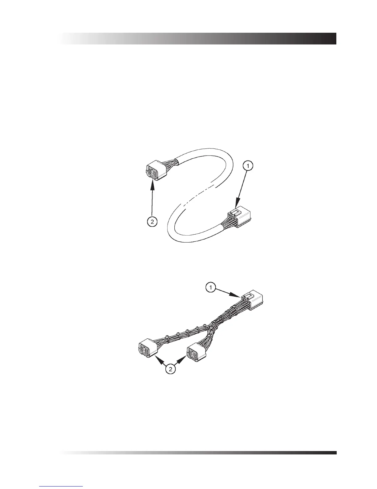 A ‘Y’ harness (Figure 11) is available, with a male plug at (1) and two female plugs (2). If necessary, more than