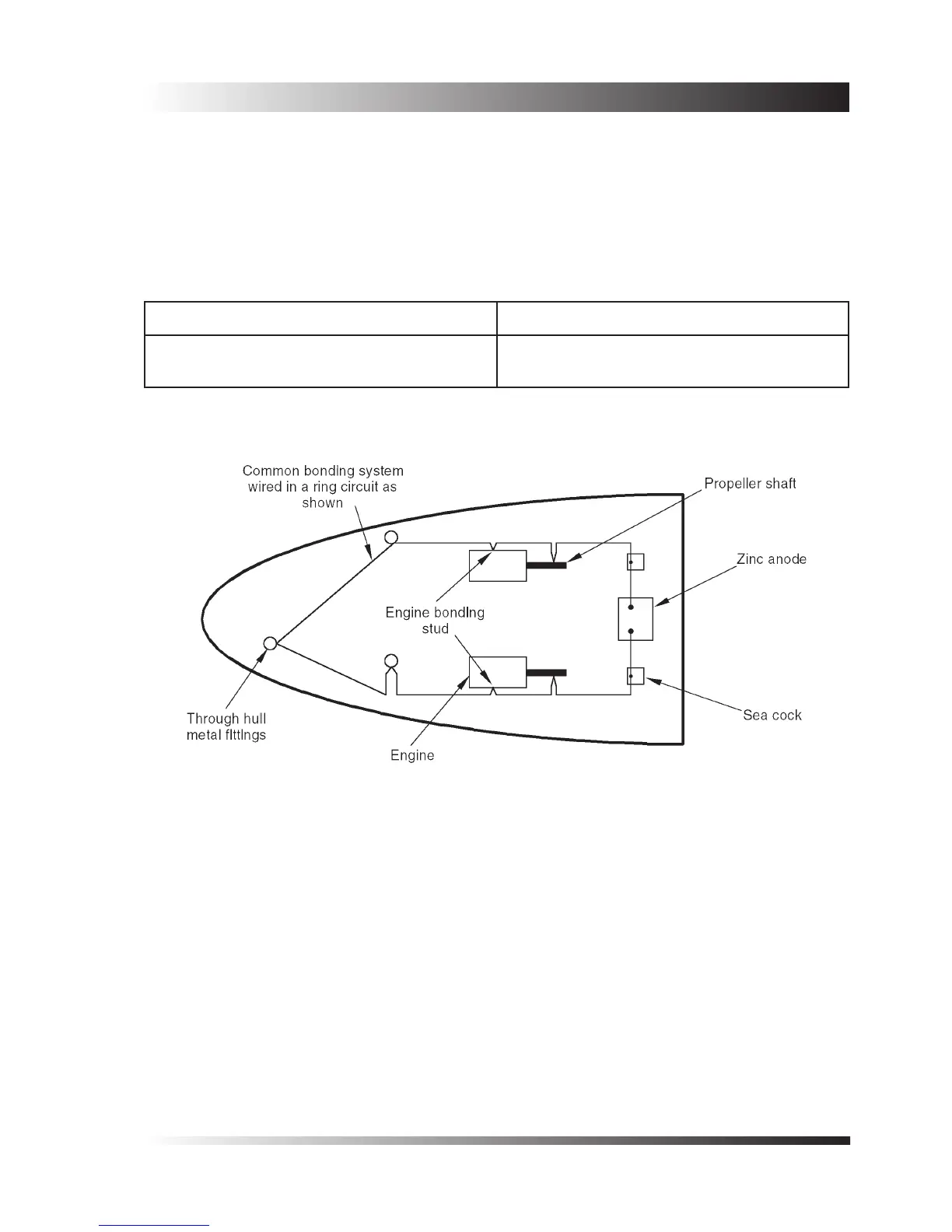 sea water, together with a connection to a Zinc sacricial anode which is xed to the outside of the hull below