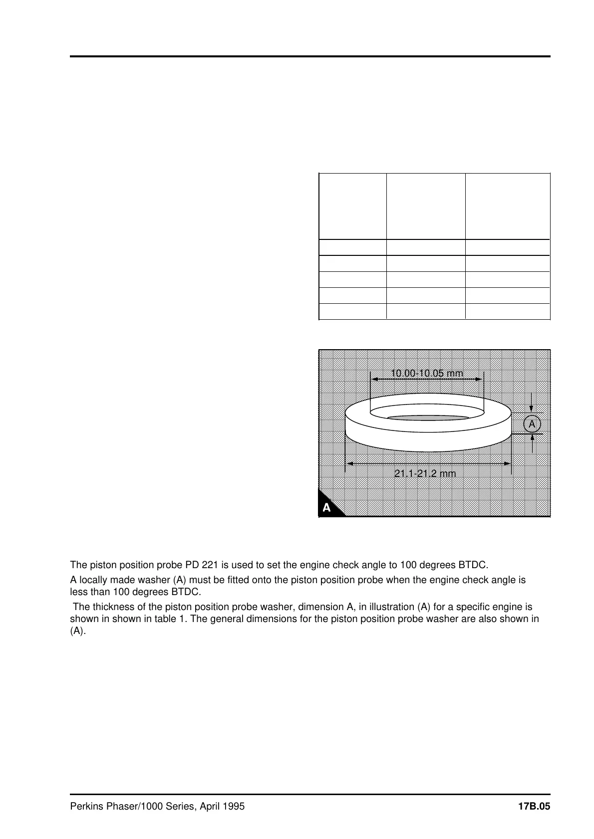 shown in shown in table 1. The general dimensions for the piston position probe washer are also shown in