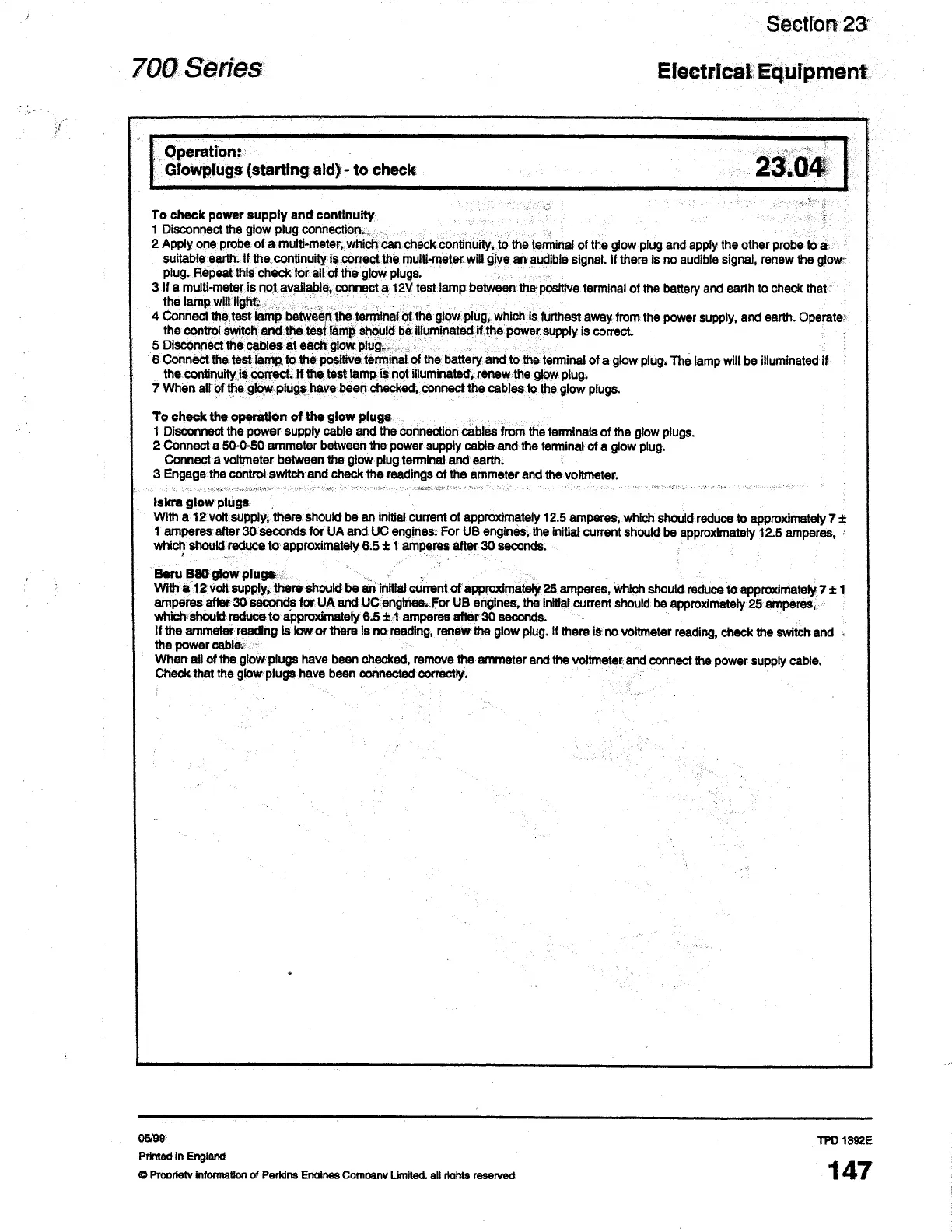 Perkins UA - Glowplugs (Starting Aid) - to Check