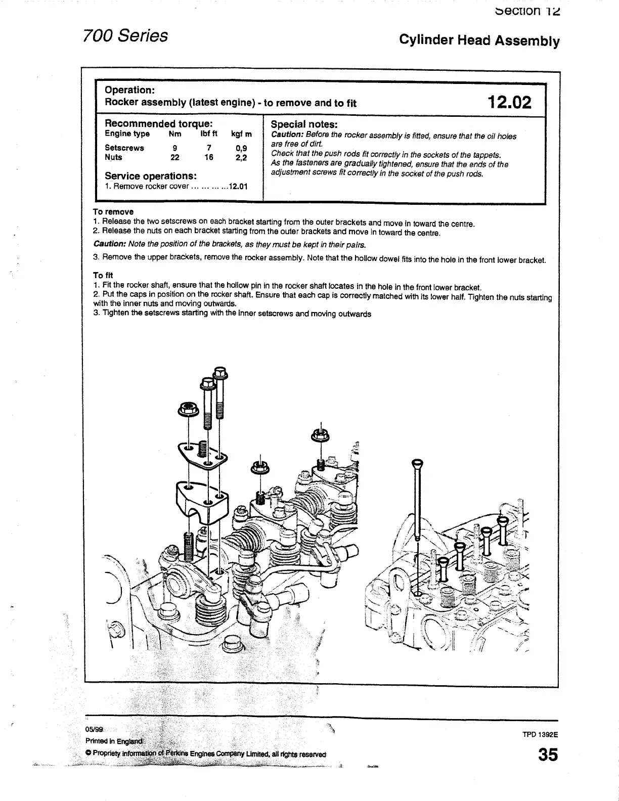 Perkins UA - Rocker Assembly - to Remove and to Fit