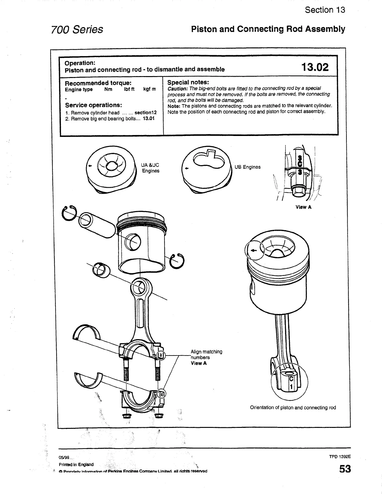 Perkins UA - Piston and Connecting Rod - to Dismantle and Assemble