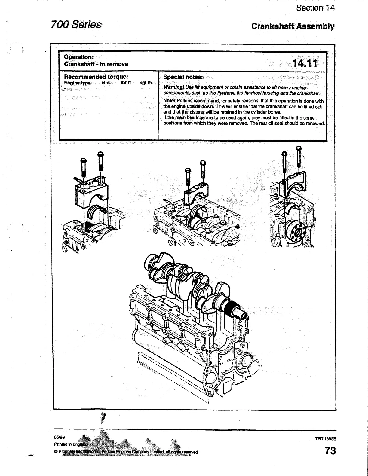 Perkins UA - Crankshaft - to Remove