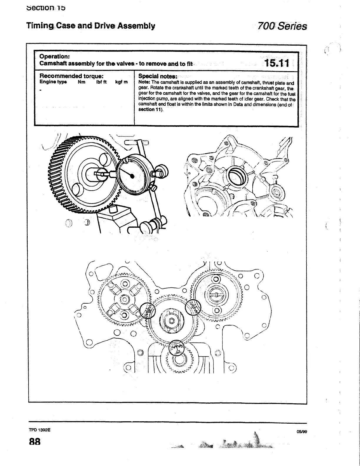 Perkins UA - Camshaft Assembly for the Valves - to Remove and to Fit