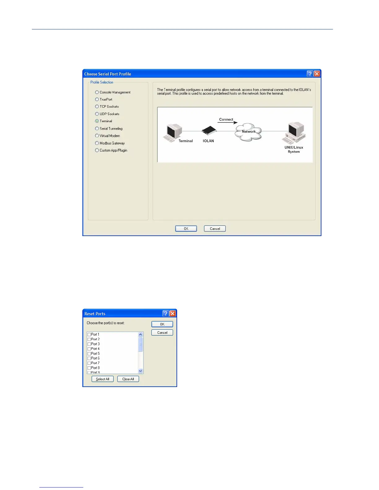 behavior. To reset a serial port, select