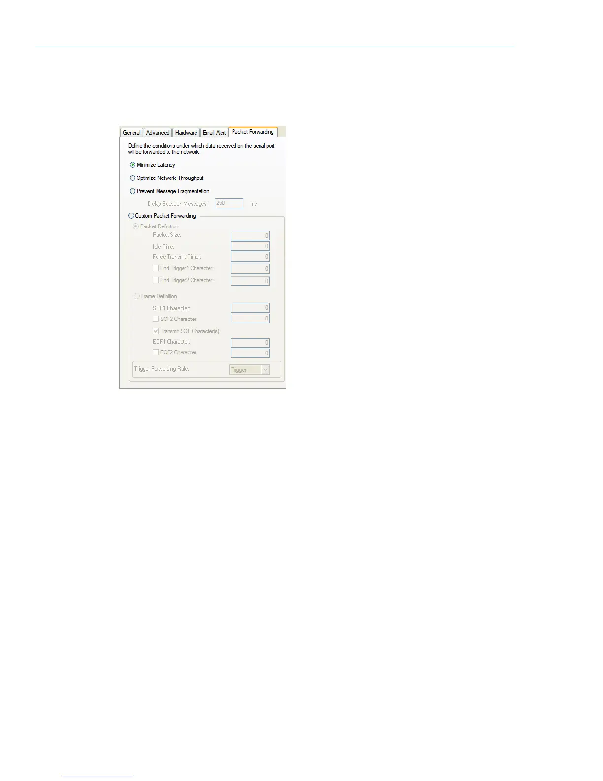 The Packet Forwarding tab can be used to control/define how and when data packets are sent from