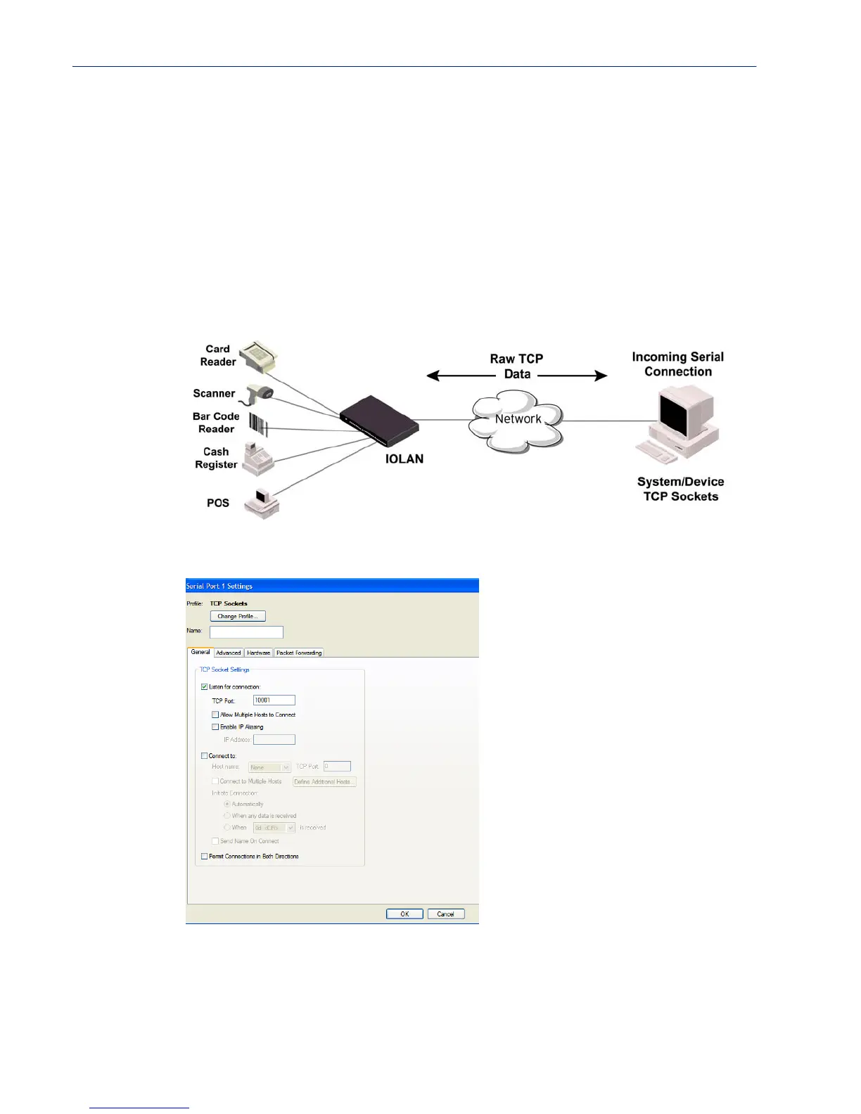 the connection can be initiated by either the Workstation/Server or the IOLAN.