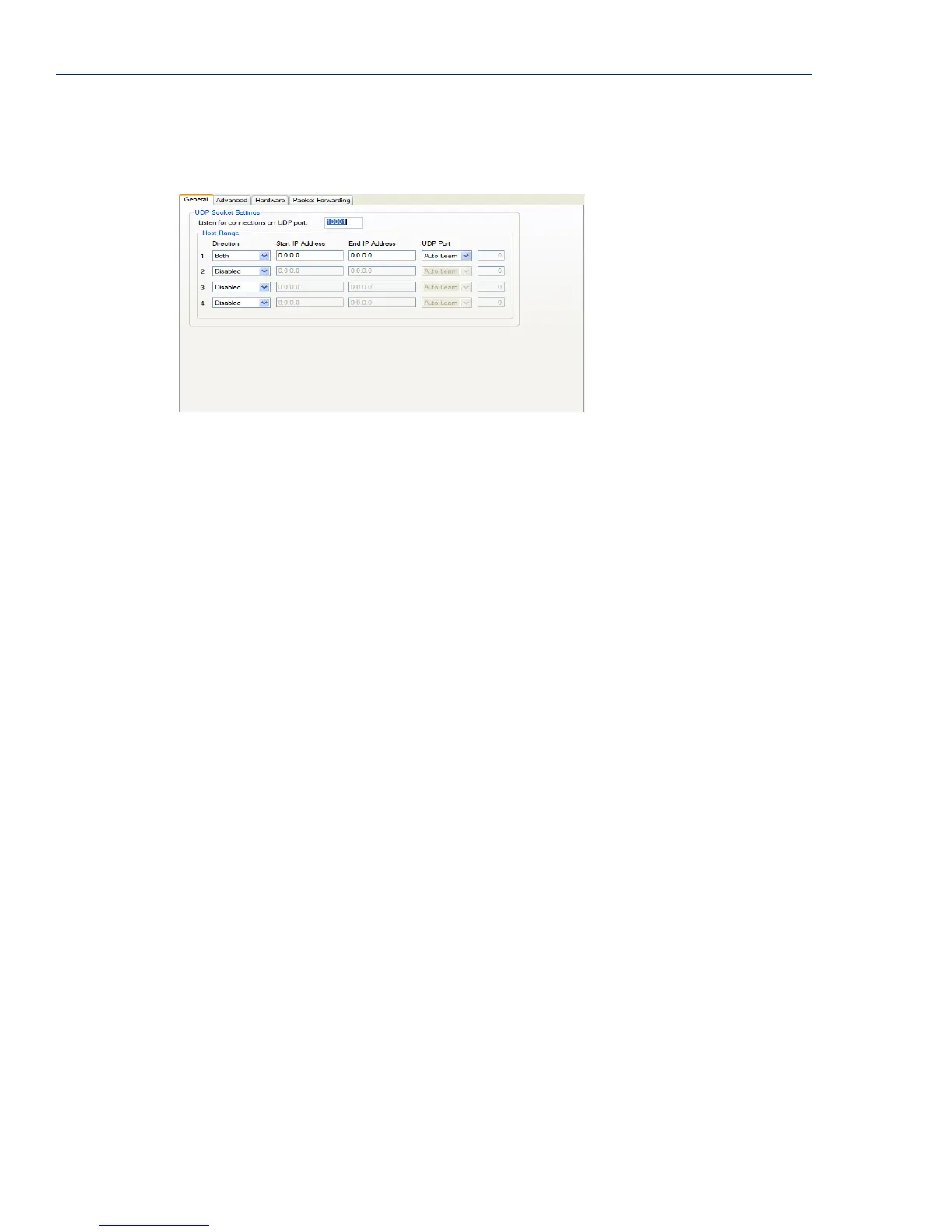 Default: Both for UDP 1 and Disabled for all other UDP ranges