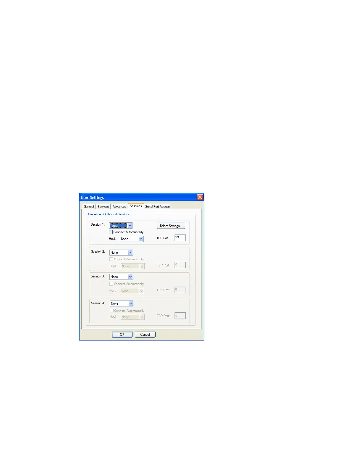 The Sessions tab is used to configure specific connections for users who are accessing the network