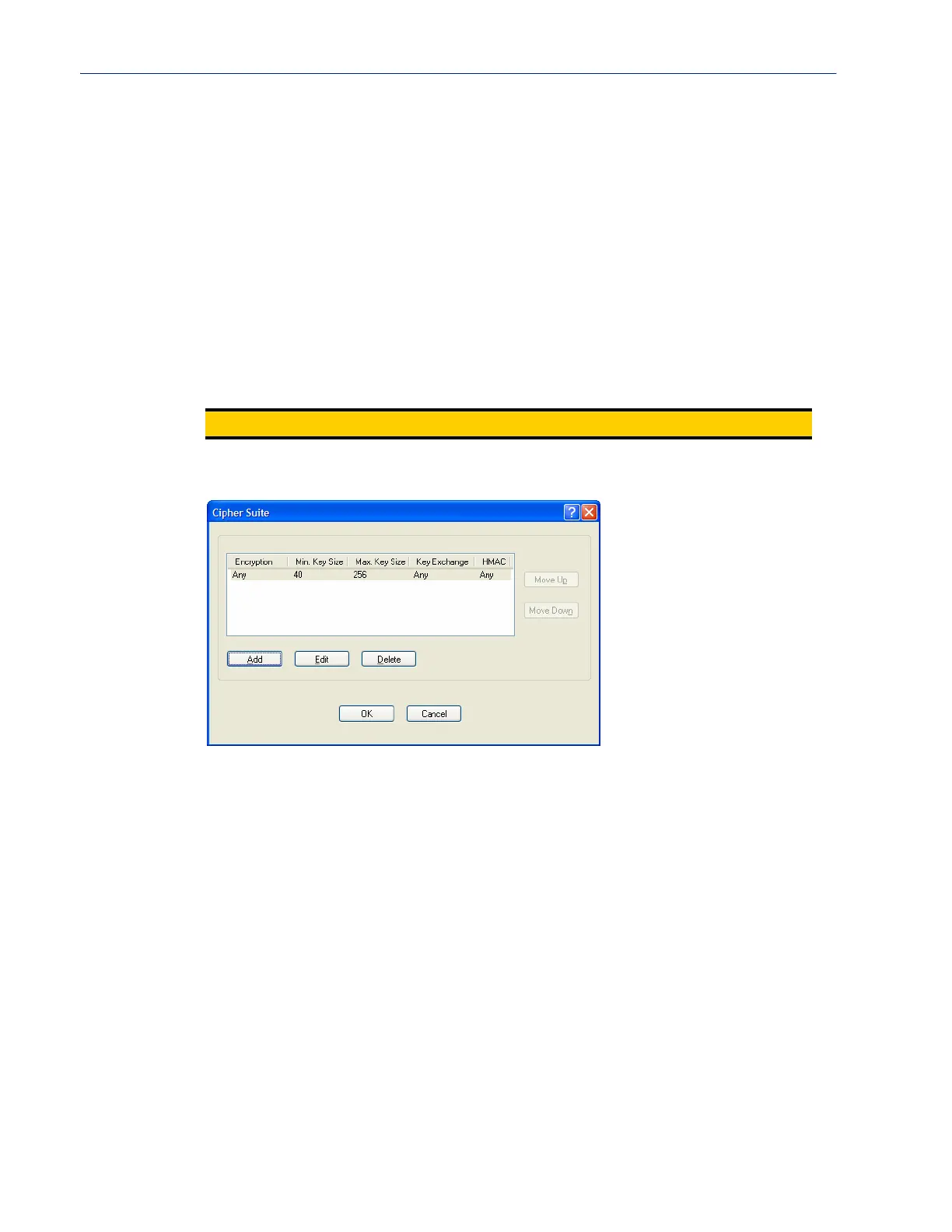 Move Up Button Moves a cipher up in preference in the cipher list.