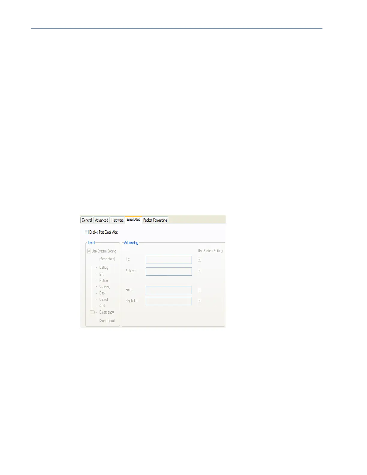 Determines whether you want the Serial Port to inherit the Email Alert settings