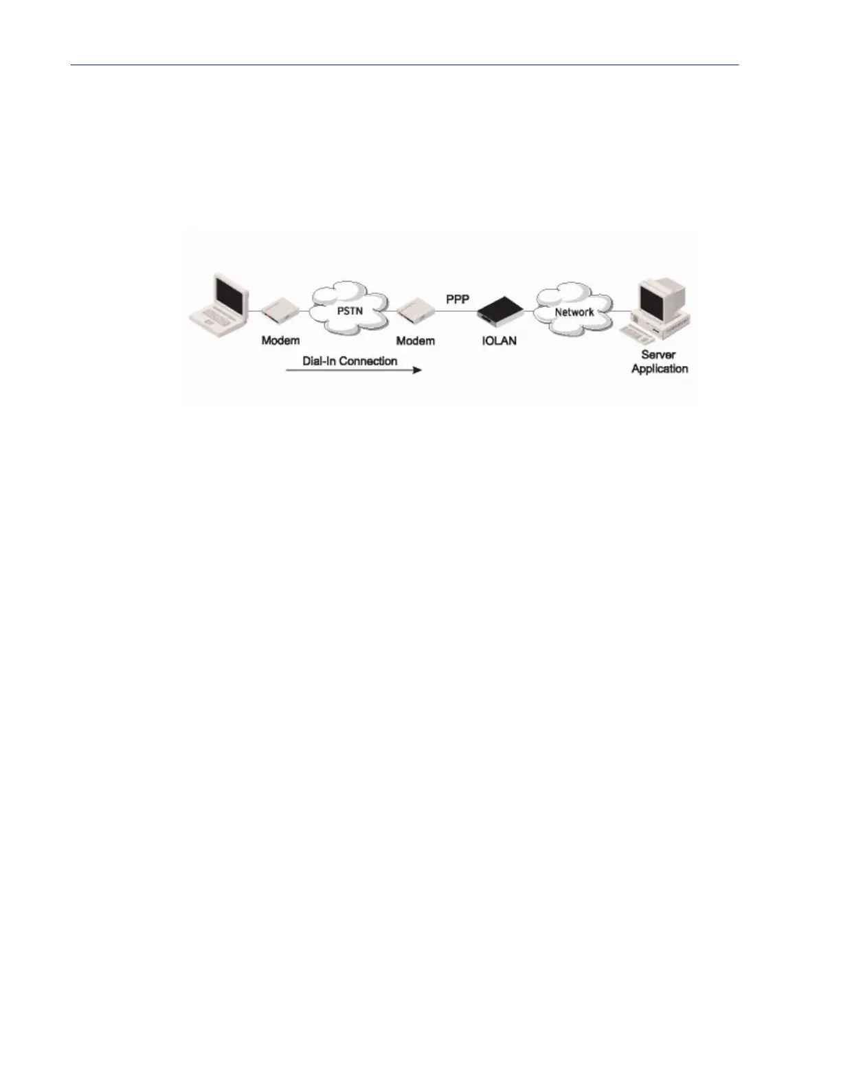 connection to the IOLAN’s serial port. This is typically used with a modem for dial-in or dial-out