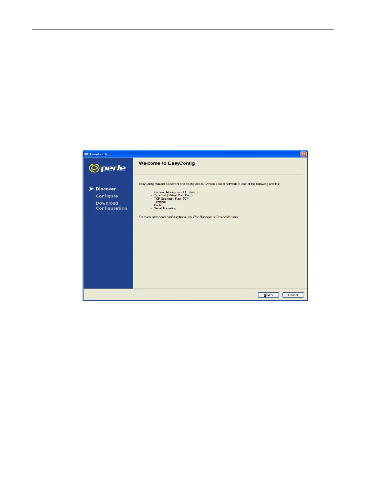 You can launch the Easy Config Wizard from the Perle website or from the installation CD-ROM.