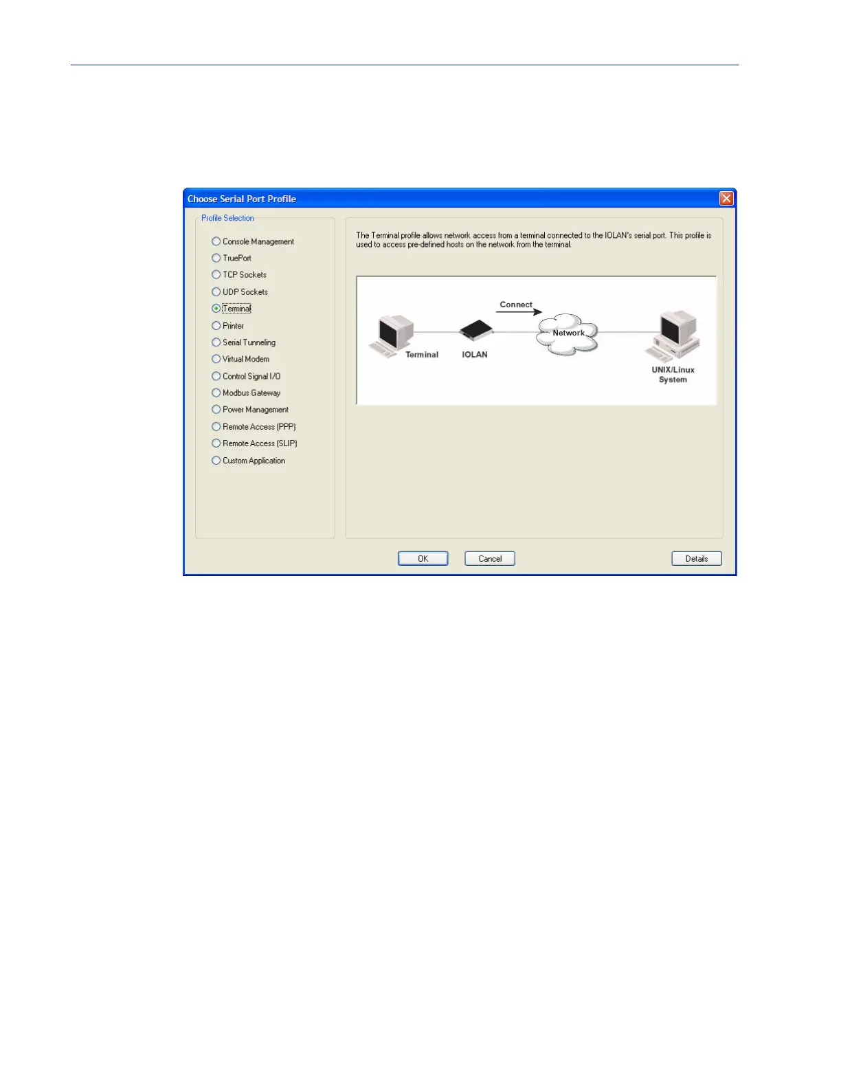 connected to the IOLAN’s serial port. This profile is used to access predefined hosts on the