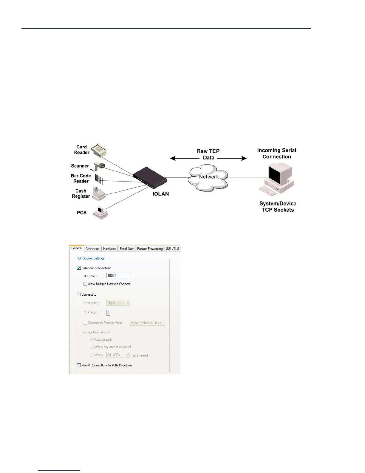 the connection can be initiated by either the Workstation/Server or the IOLAN.
