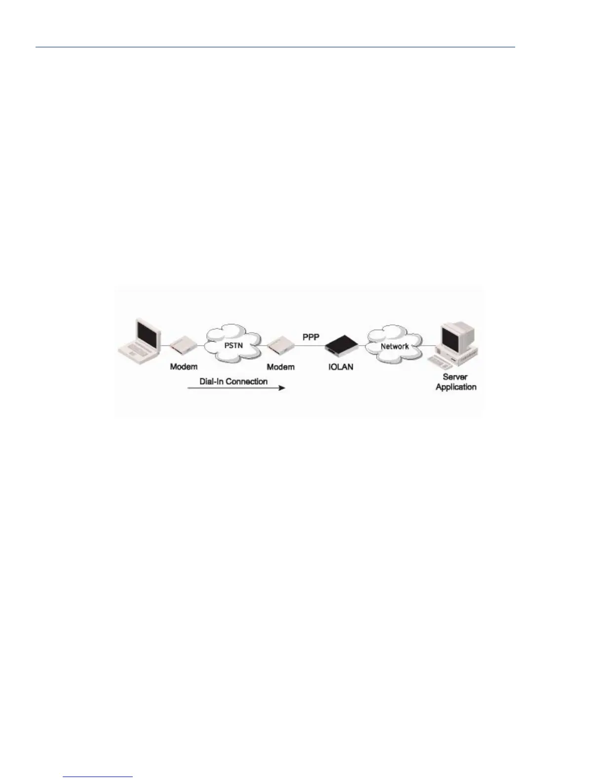 connection to the IOLAN’s serial port. This is typically used with a modem for dial-in or dial-out