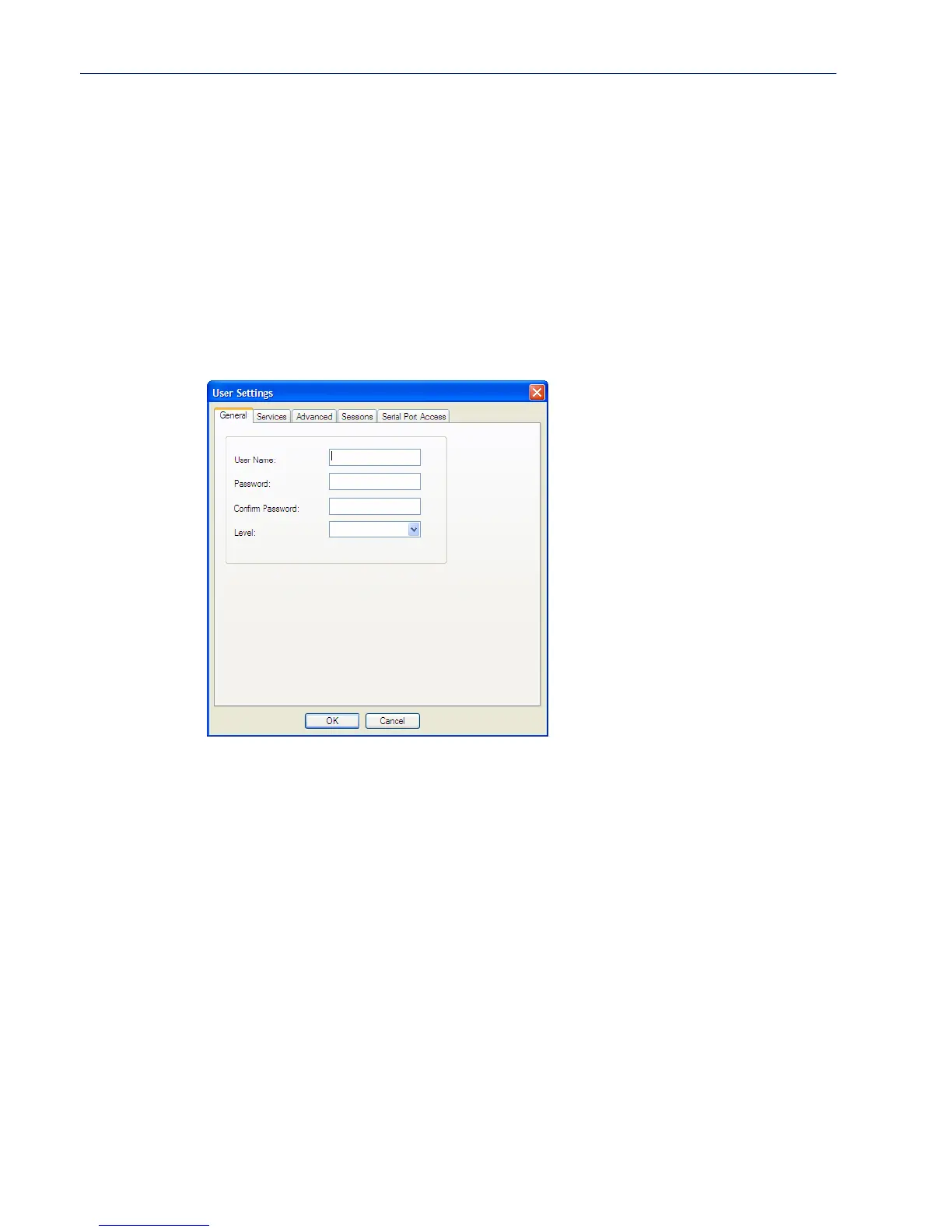 You must, minimally, provide a User Name and Level for a user.