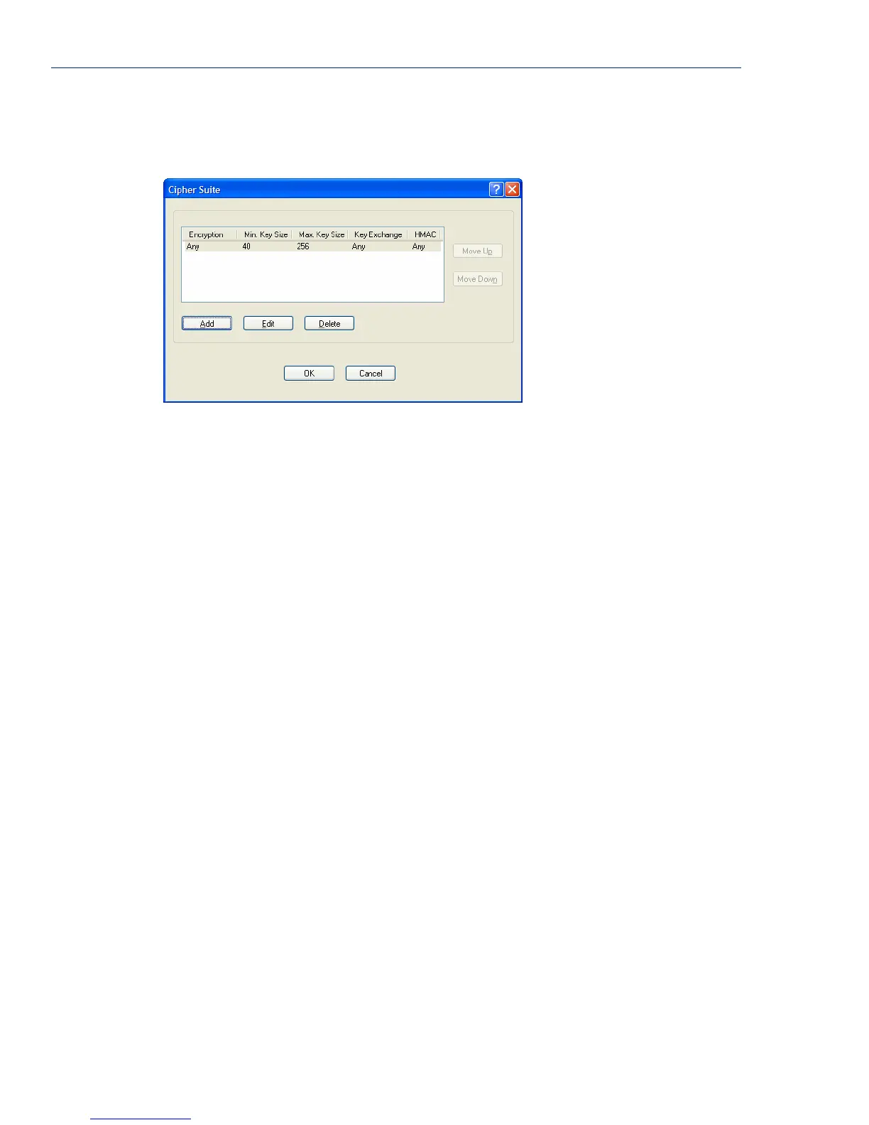 The following buttons are available on the Cipher Suite window: