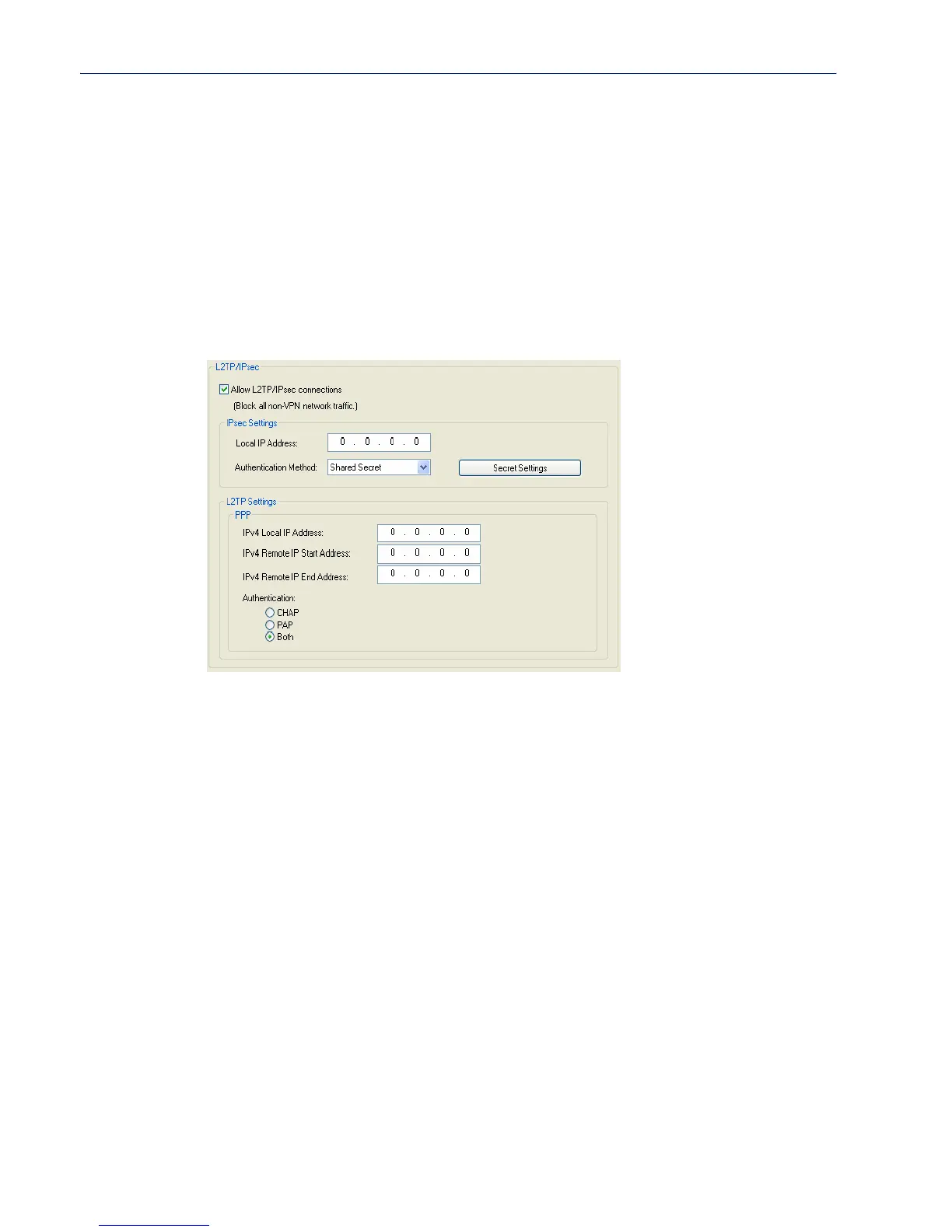 Local IP Address The IPv4 address that the IOLAN will listen on for L2TP/IPsec connections. If