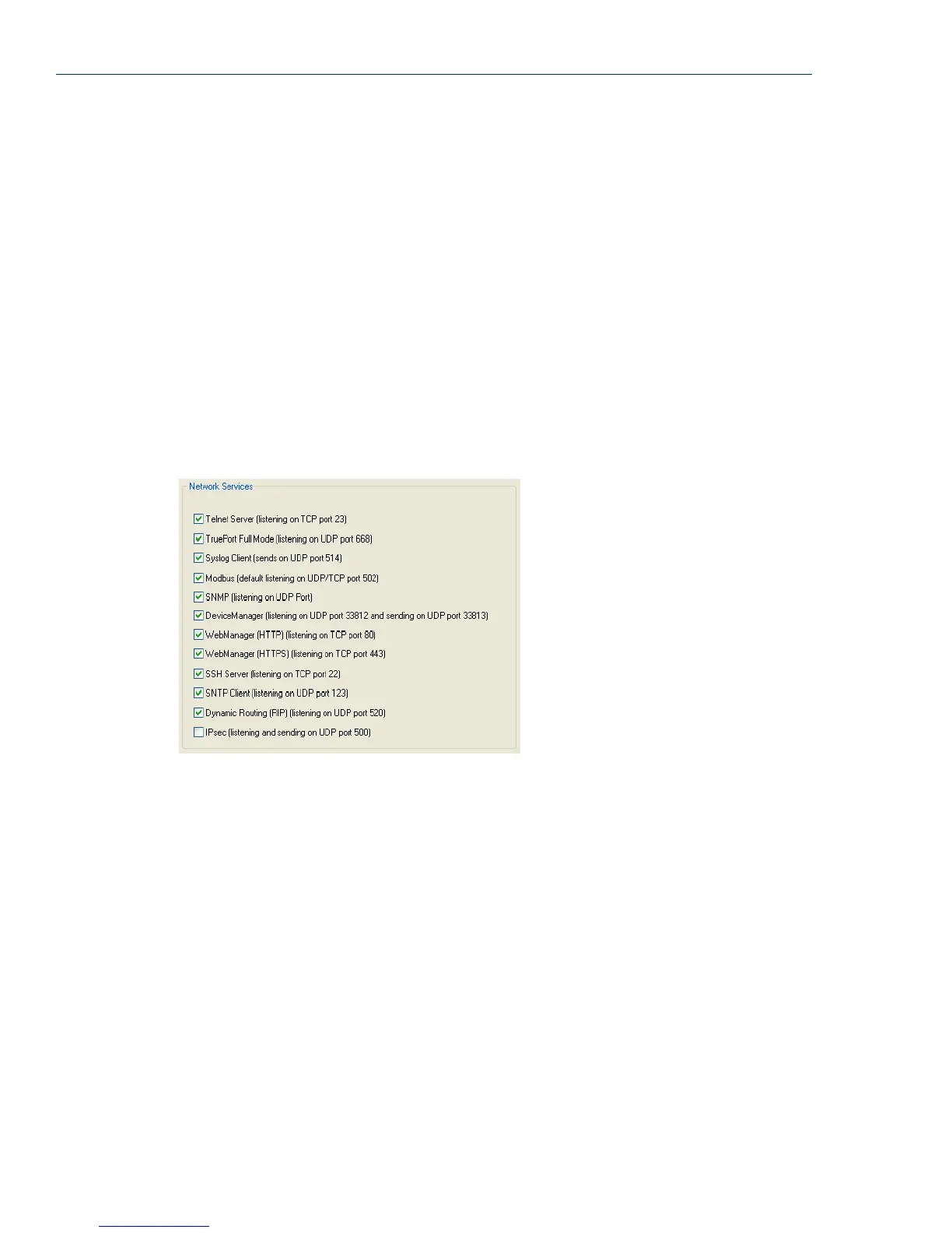 By default, all daemon and client applications are enabled, except IPsec, and running on the IOLAN.